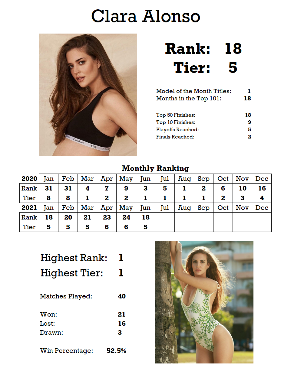 | Barbara Palvin | W | 16 | 7 |