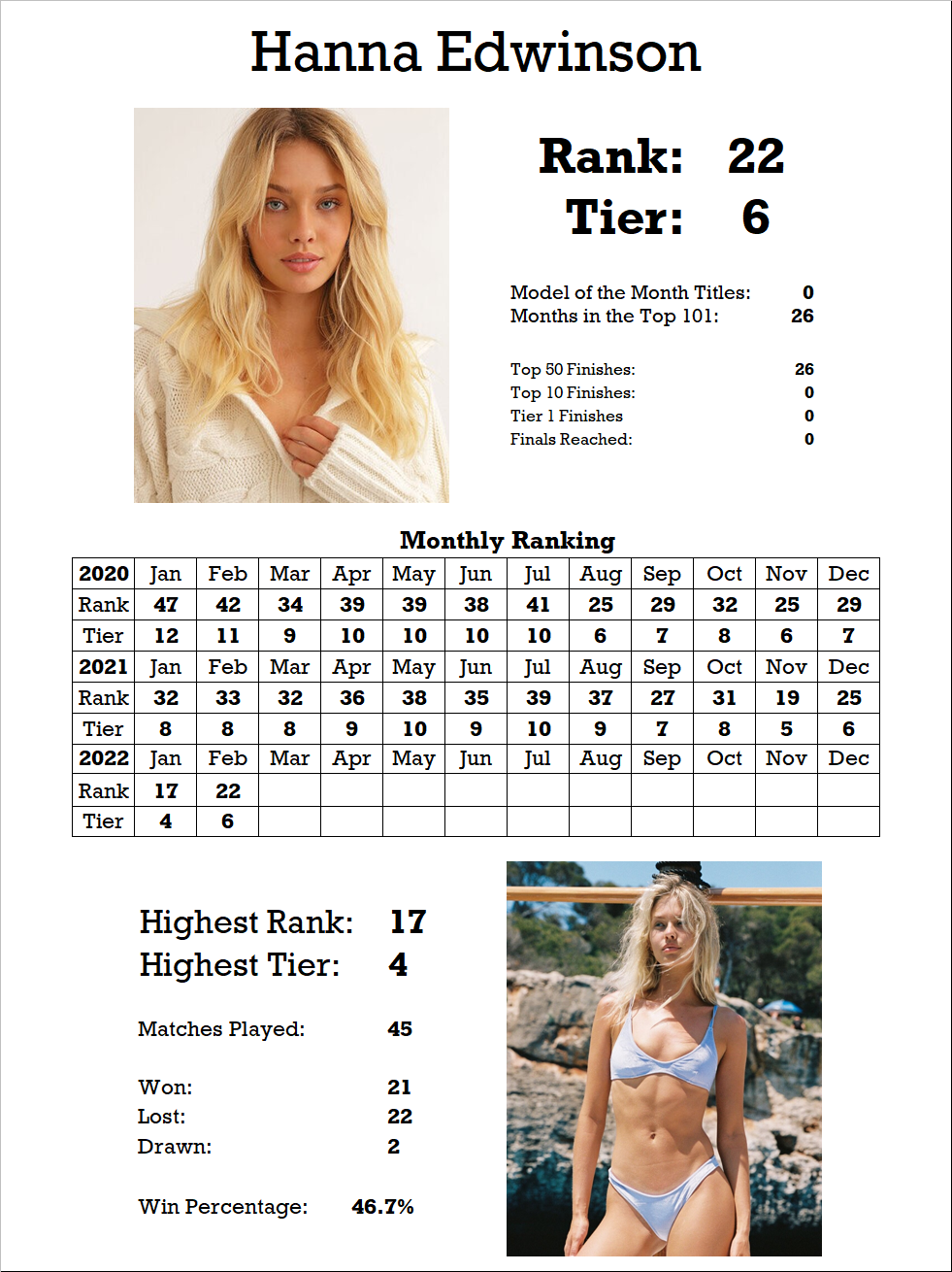 | Stella Maxwell | W | 7 | 4 |
