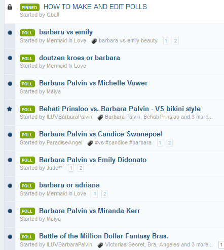 To me polls actually have the potential for greater relevance seeing as how they can potentially amass far more votes than any competition round can. The more votes there are, the more relevant the comparisson is to me. Some make the case that people change their minds which we see with competitions as people go from giving a ten to a six in just a few short months. With polls, you can only vote once anyway, so it makes no difference to me whether someone changes their mind or not. There's really no significant difference between the same person now thinking that Lindsay is prettier than Erin and a new person altogether thinking Lindsay is prettier than Erin anyway. The real issue is that some use them to PIP by saying the name of who they voted for in a thread that hasn't been posted in for several years opposed to joining in an actual discussion. In the end, it is called Babe Polls and was created for polls and competitions later came onto the scene so I don't see getting rid of polls only because they inconvenience some competitions. That's not to say I prefer one over the other. When I frequented, it was finding out a new name and the commentary of the voters that made it interresting rather than the format. What I will likely do though is create a subforum for one or the other. Either competitions will keep the main side because they're trending or polls its called Babe Polls. Maybe the one with the most threads or hits in the last year will get the main side, but whatever the arrangement, a member that likes one has just as much right to it and this should satisfy both sides.