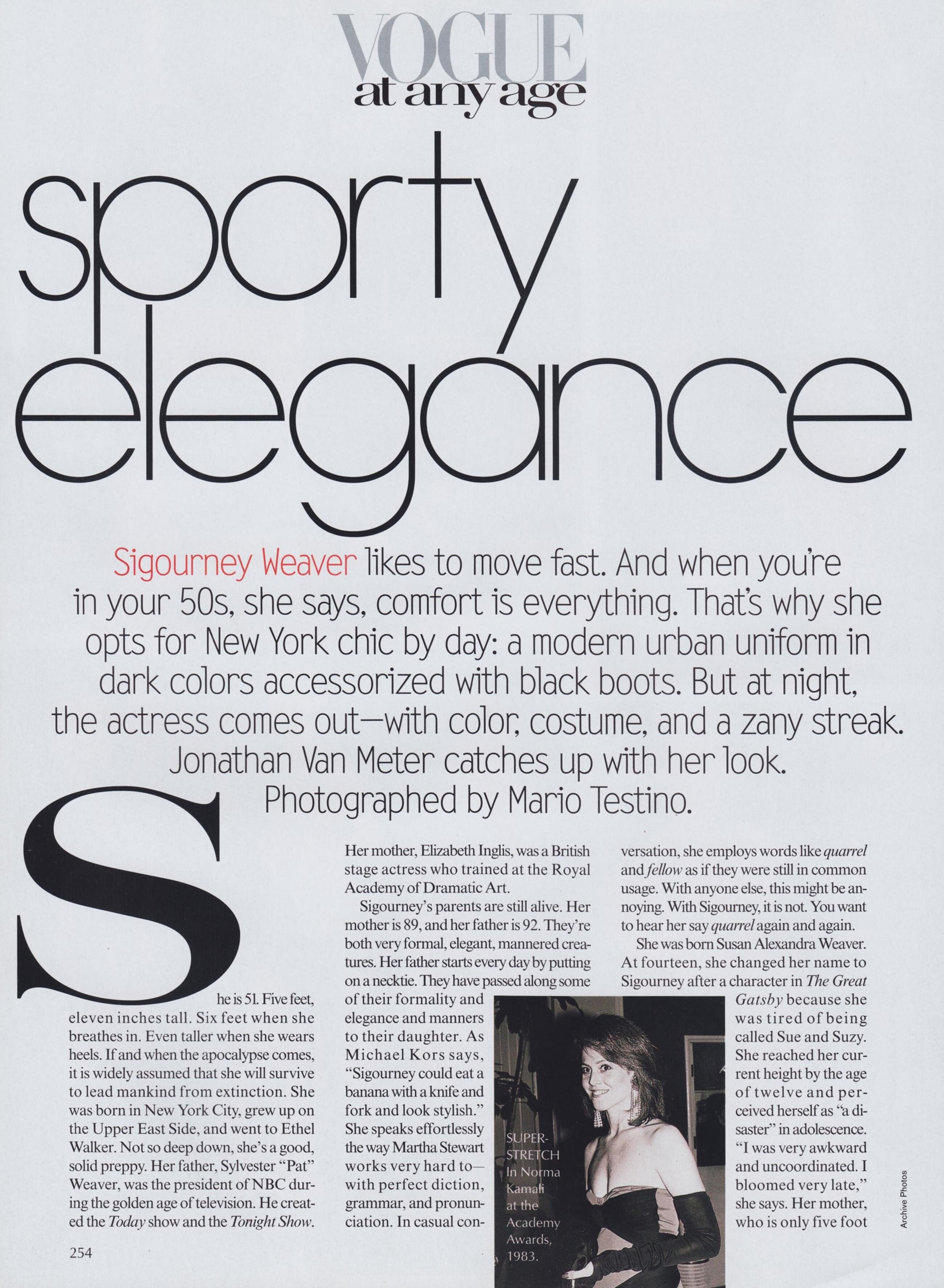 "Sporty Elegance" Photographer: Mario Testino Sittings Editor: Tonne Goodman Hair: Maury Hopson Makeup: Sandy Linter