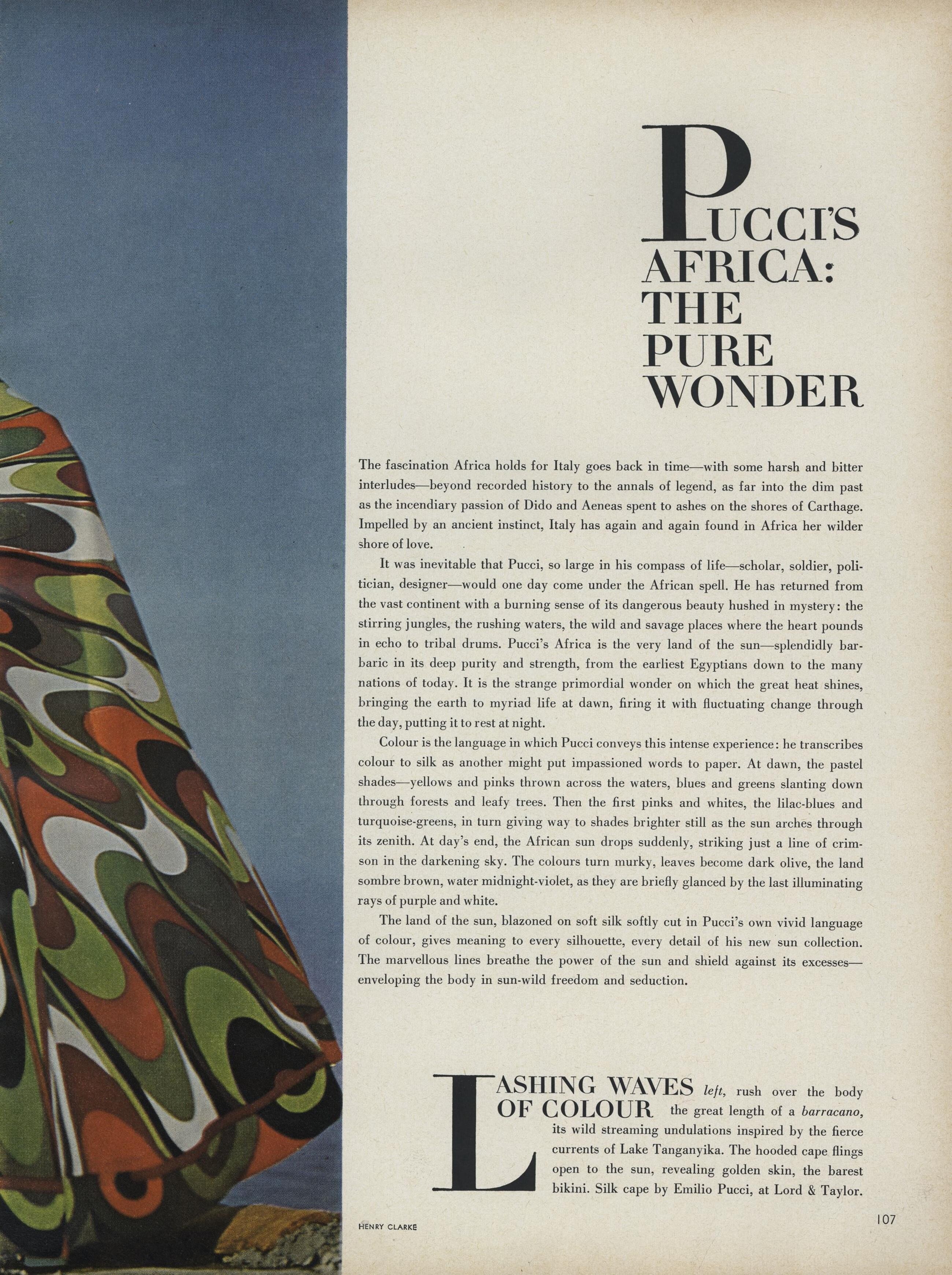 He also took celebrity portraits: Anna Magnani, Coco Chanel, Sophia Loren and Maria Callas were among his best known subjects. In the 1960's, Diana Vreeland, the formidable editor of Vogue, sent him to such exotic locations as Syria, Iran, India and Mexico to create exciting fashion layouts. Upon his death in 1996, it was revealed that Henry Clarke had named the Institut Pasteur as universal legatee of his estate. He bequeathed his historical collection of photographs to the Musée de la Mode et du Costume in Paris.