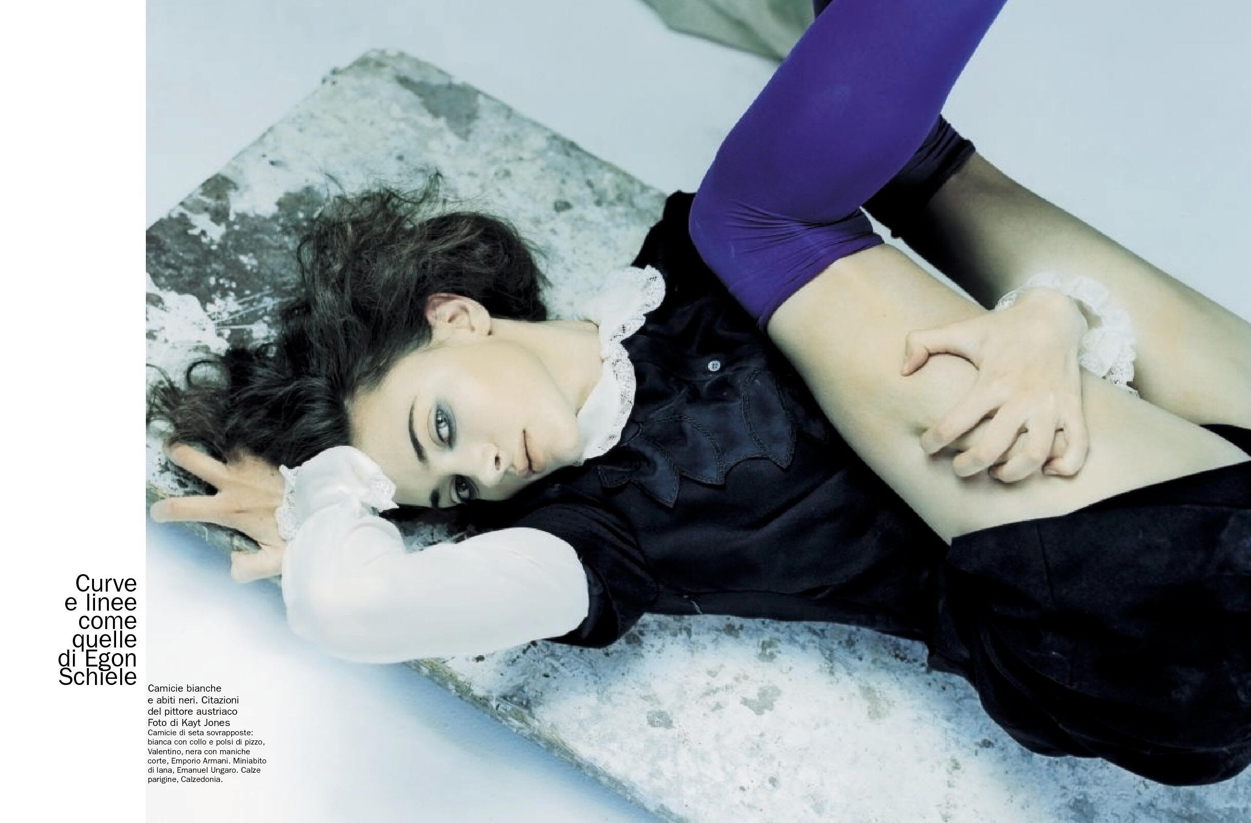 Magazine: D La Repubblica delle Donne #464 (August 27, 2005) Title: Curve e linee come quelle di Egon Schiele Photographer: Kayt Jones Model: Anna Osceola, Rachel Alexander