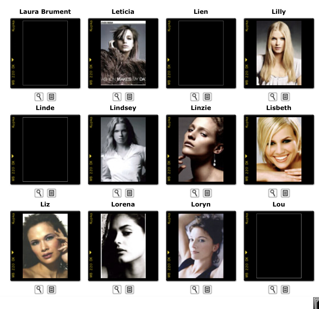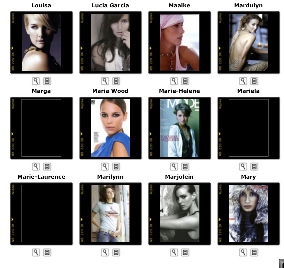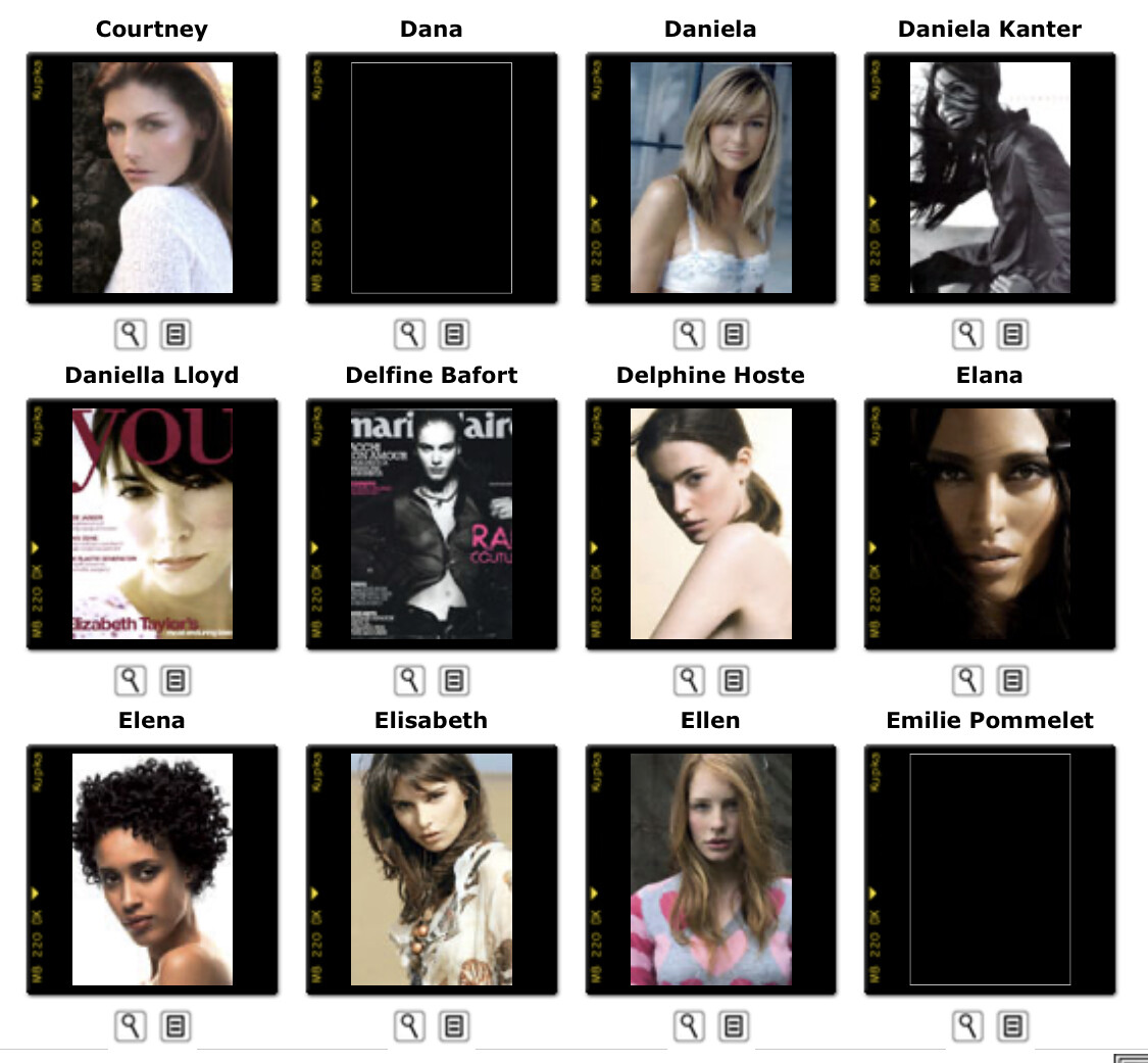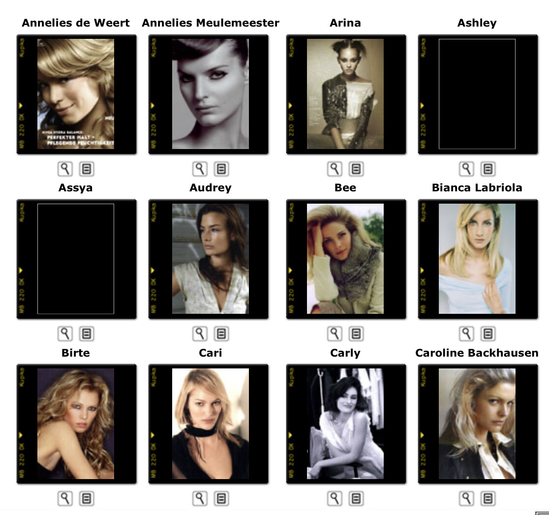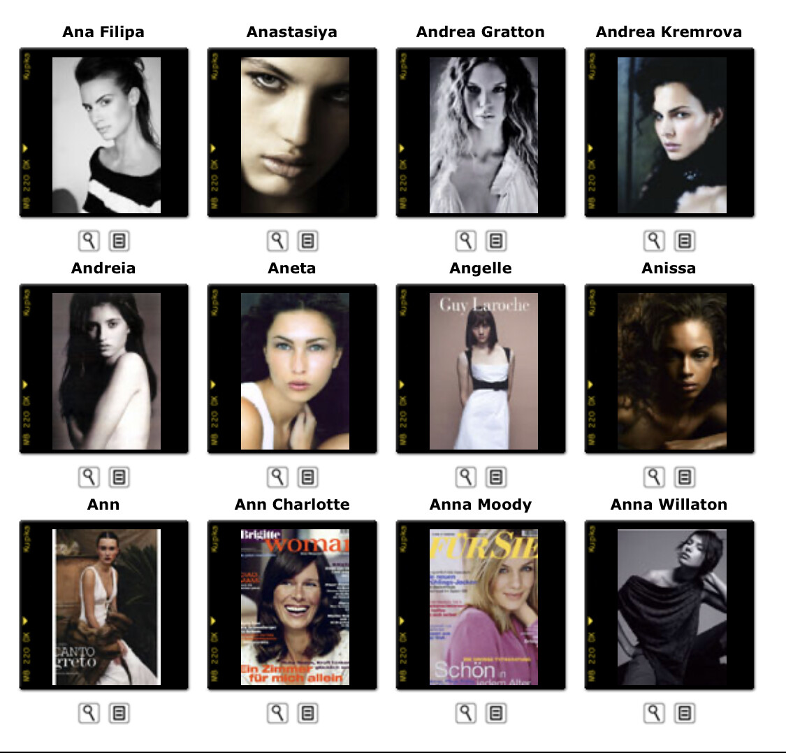 This is where you post Model Agency's Boards. Its either the agencies book or screen shots of archived websites. Please do not make ID requests. This is to help ID and catalog what models worked in what year/location for all model id and vintage enthusiast.