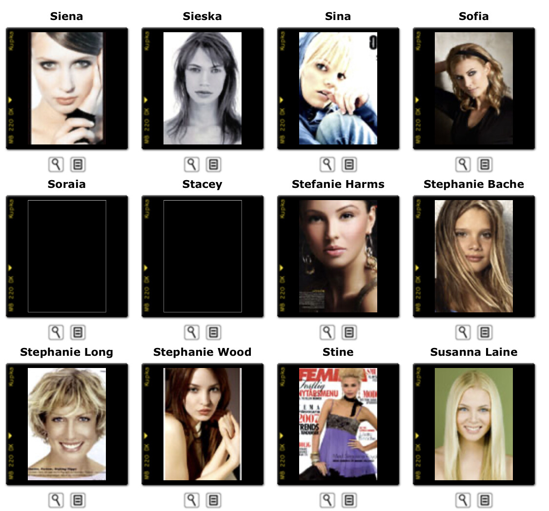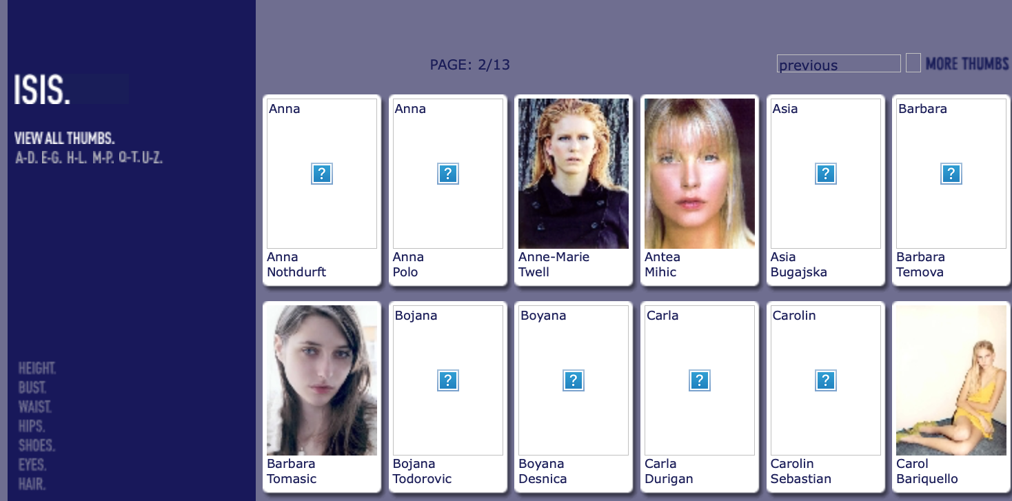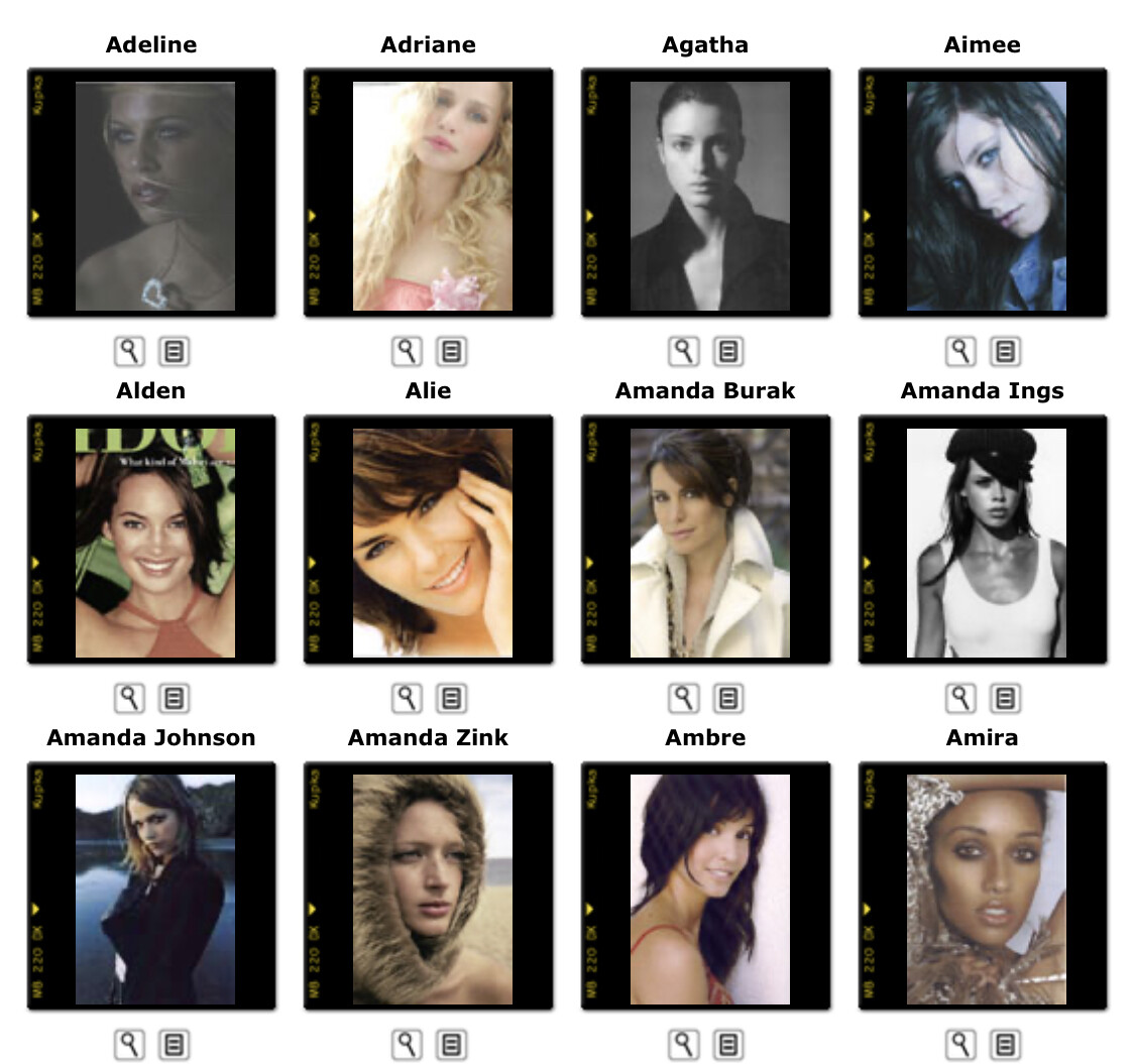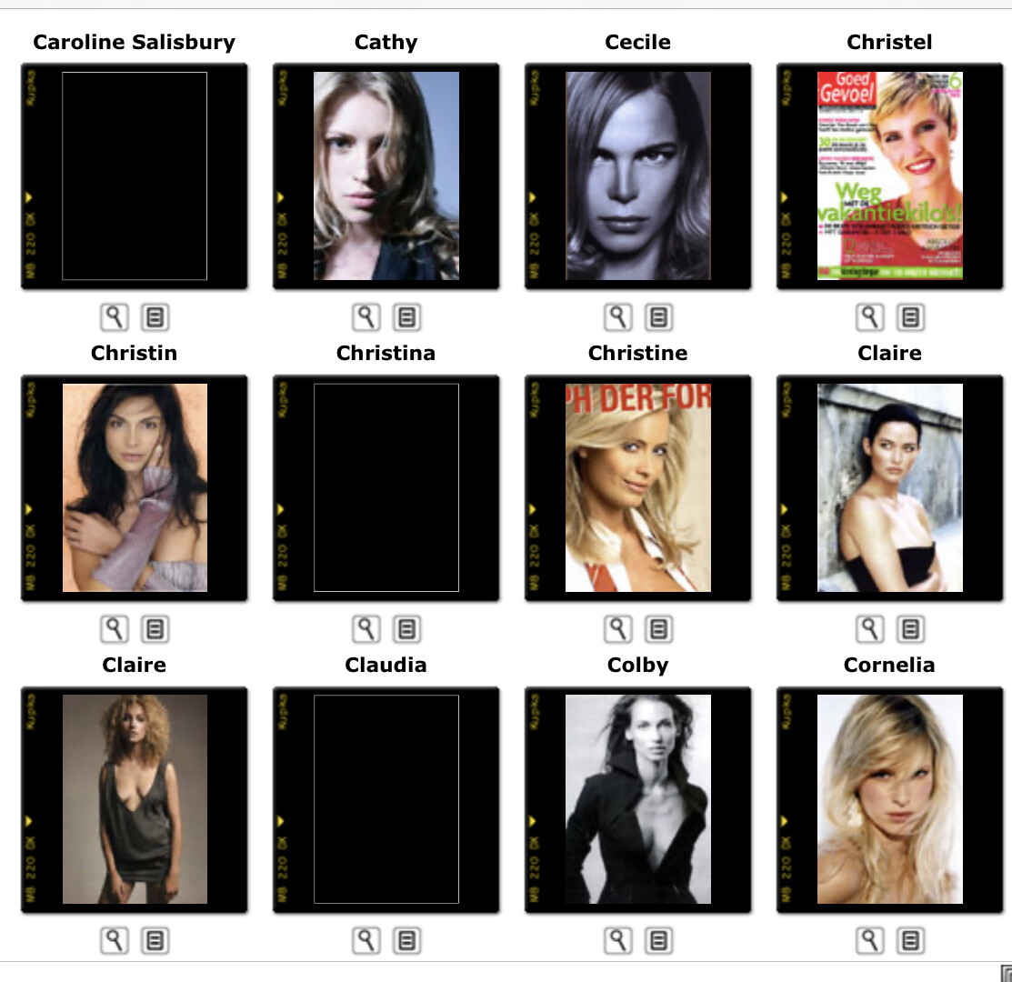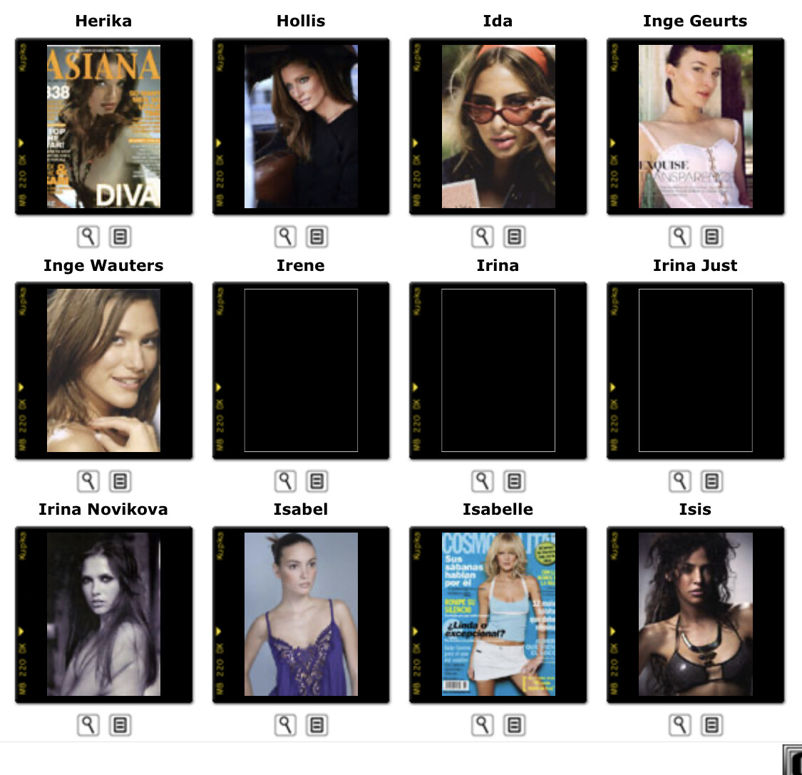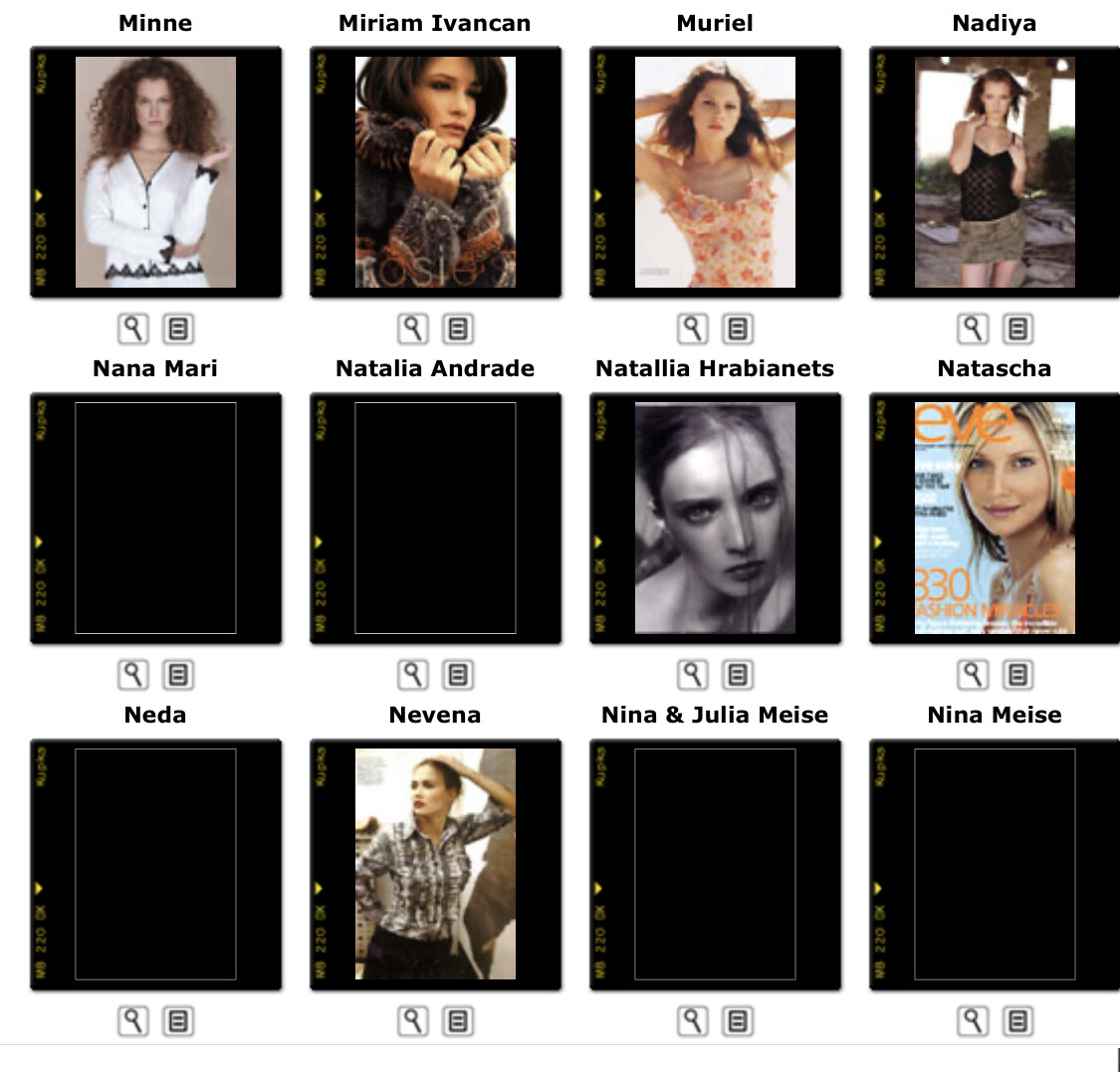 This is where you post Model Agency's Boards. Its either the agencies book or screen shots of archived websites. Please do not make ID requests. This is to help ID and catalog what models worked in what year/location for all model id and vintage enthusiast.