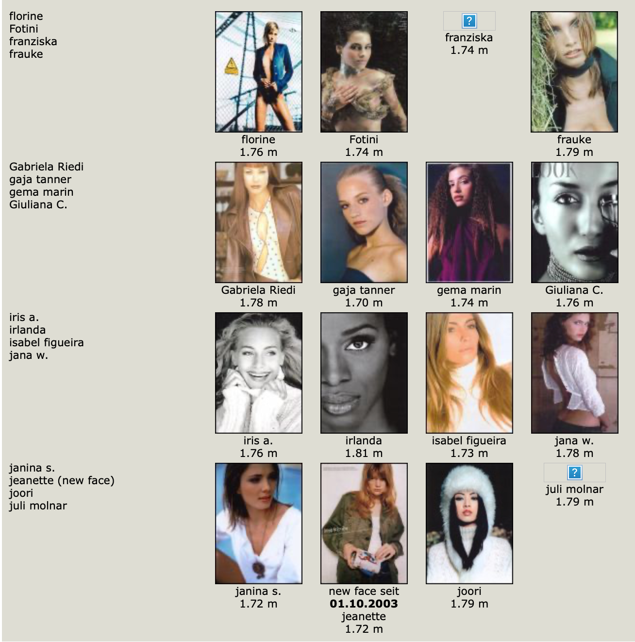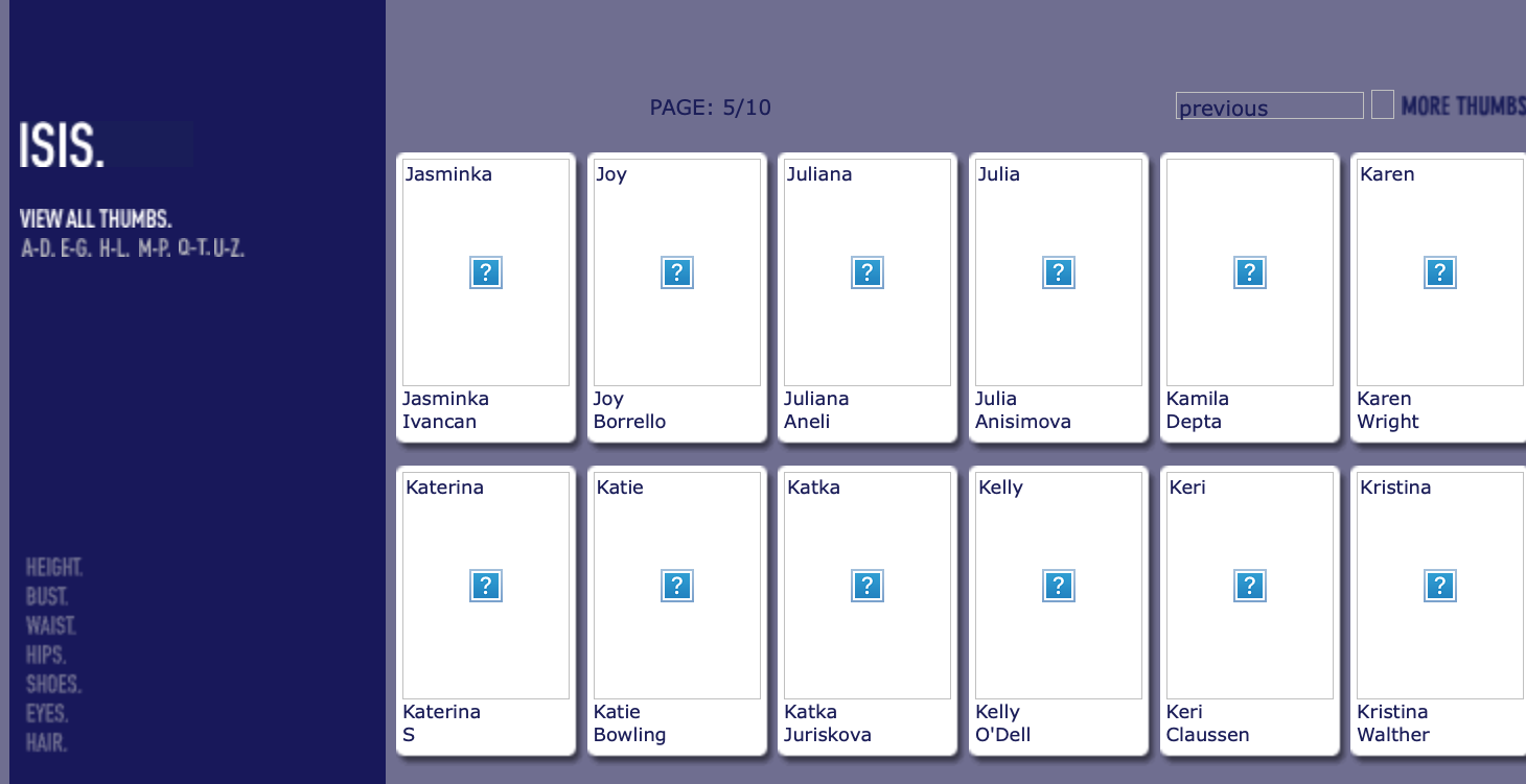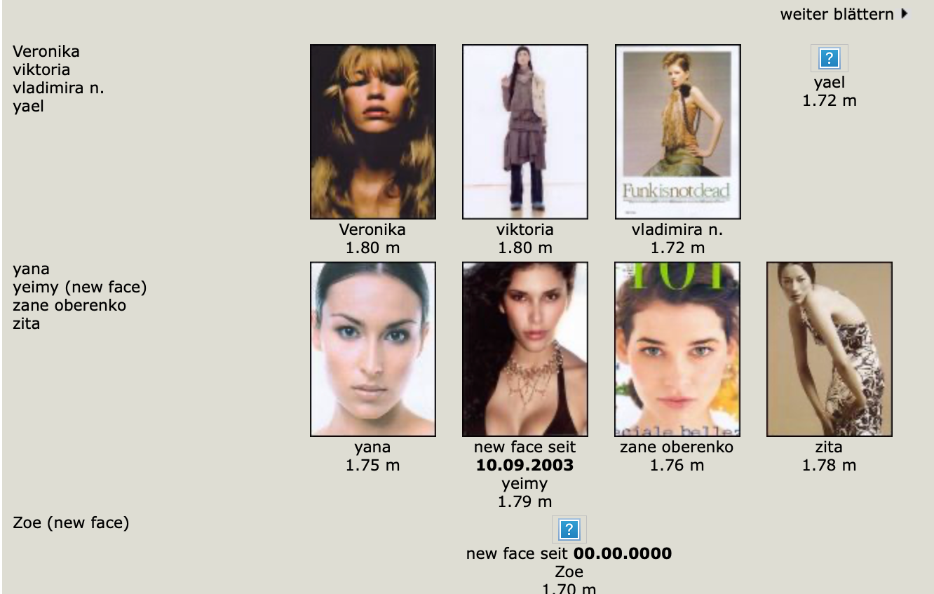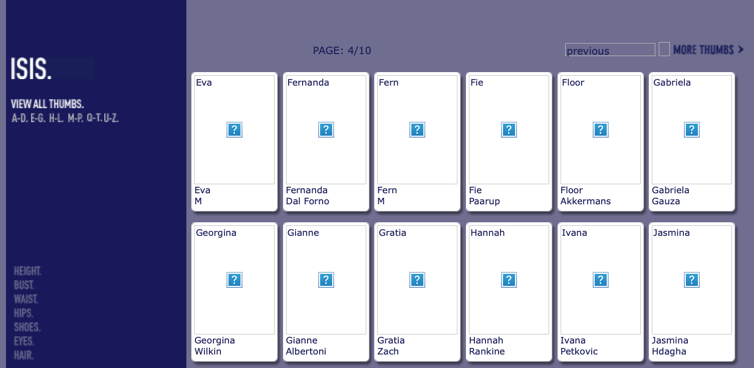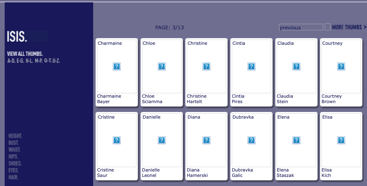 This is where you post Model Agency's Boards. Its either the agencies book or screen shots of archived websites. Please do not make ID requests. This is to help ID and catalog what models worked in what year/location for all model id and vintage enthusiast.