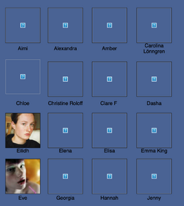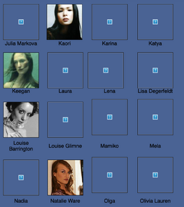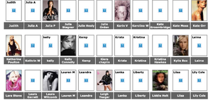 Anita, Wendy Anthiny, Kristen Arnold, Cara, Angela Christ, Jess Davis, , Louise de Villiers, Deanna Dunstan, Greta, haley, Heidi, Jacqueline, Nicole Leston, Angela Lindvall, Marieme, Marine, Jamie Moore, Ami Nemic, Rachel, Julia Rudukov.
