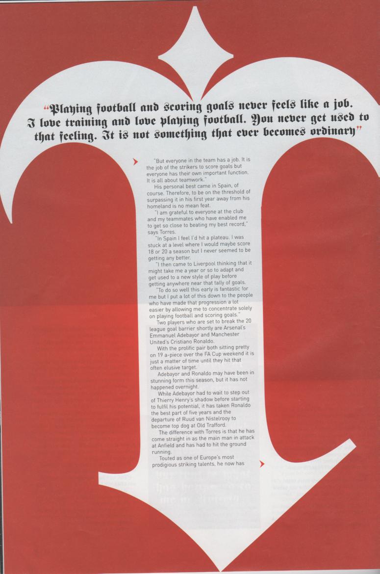 Torres told The Mirror: "I really admire Steven Gerrard because I know the pressure he is under every day, everybody talking about him all day long, in changing rooms, in the pubs, in the stadium.