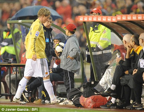 Torres started well enough for Spain, firing a 35-yard shot inside the opening two minutes, but he went off with the European Champions trailing to Wesley Sonck’s opener and left it to Andres Iniesta and David Villa to score Spain’s goals.