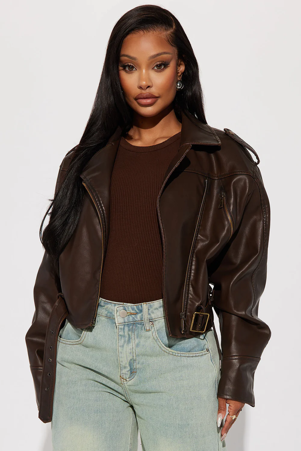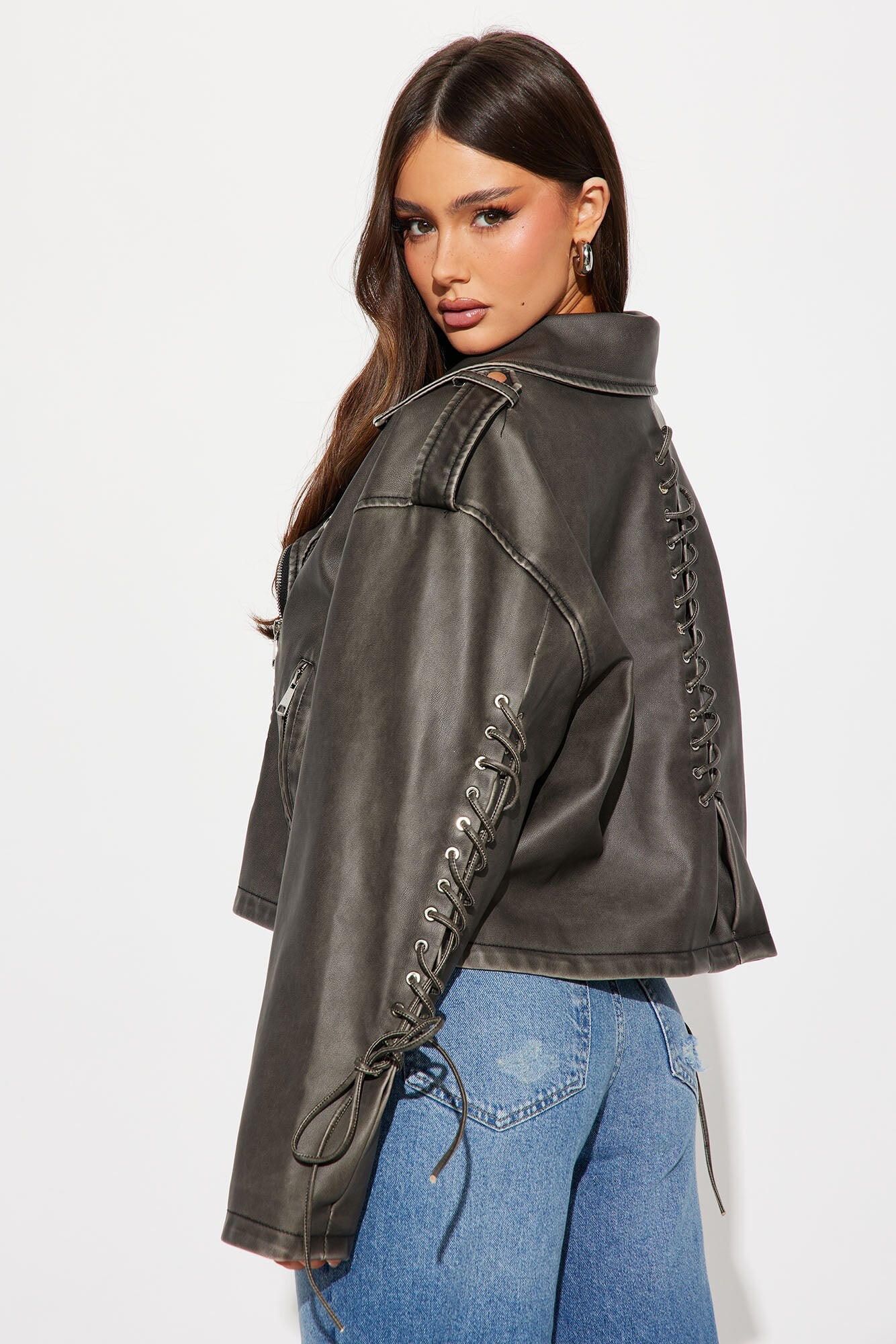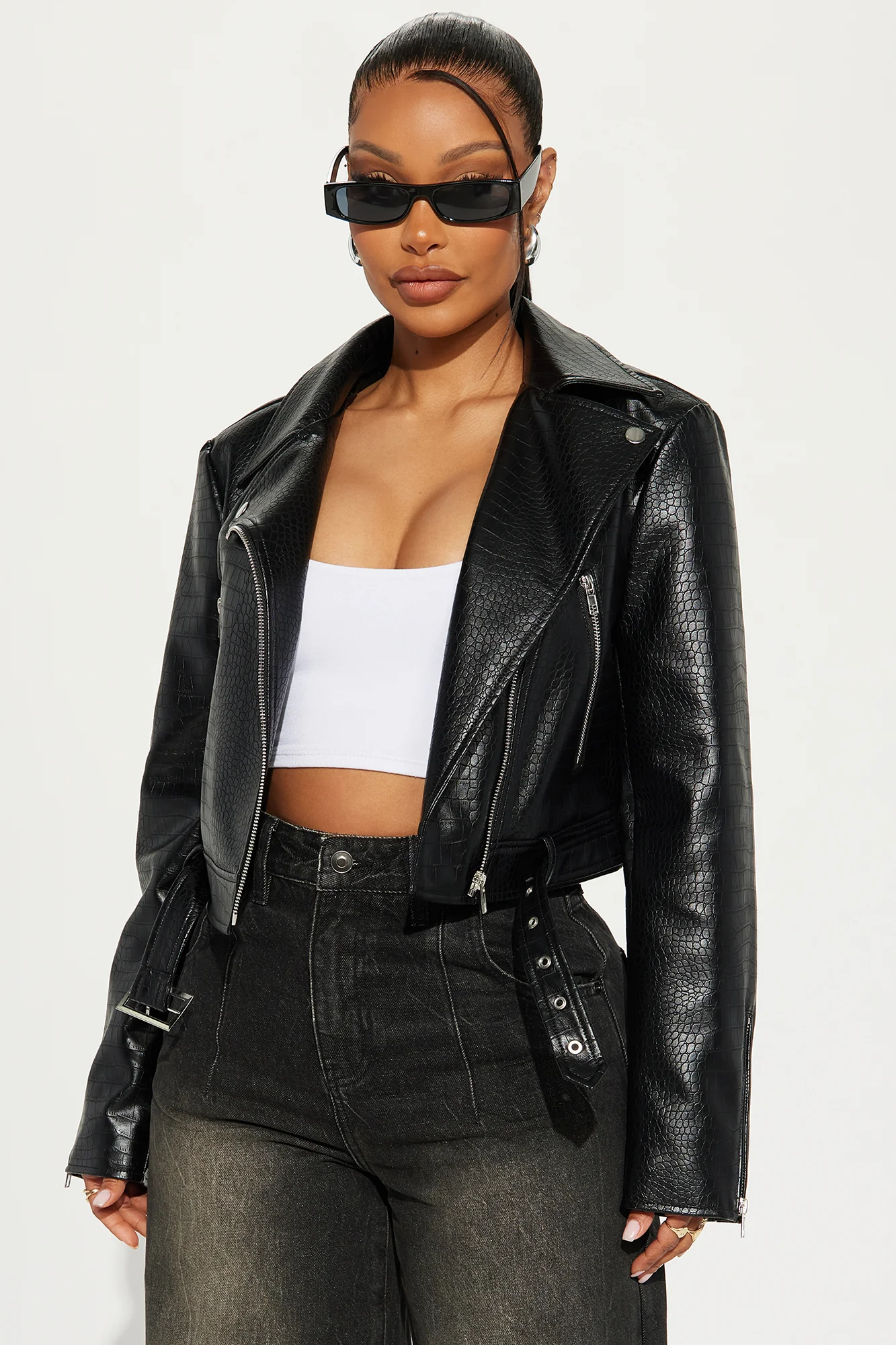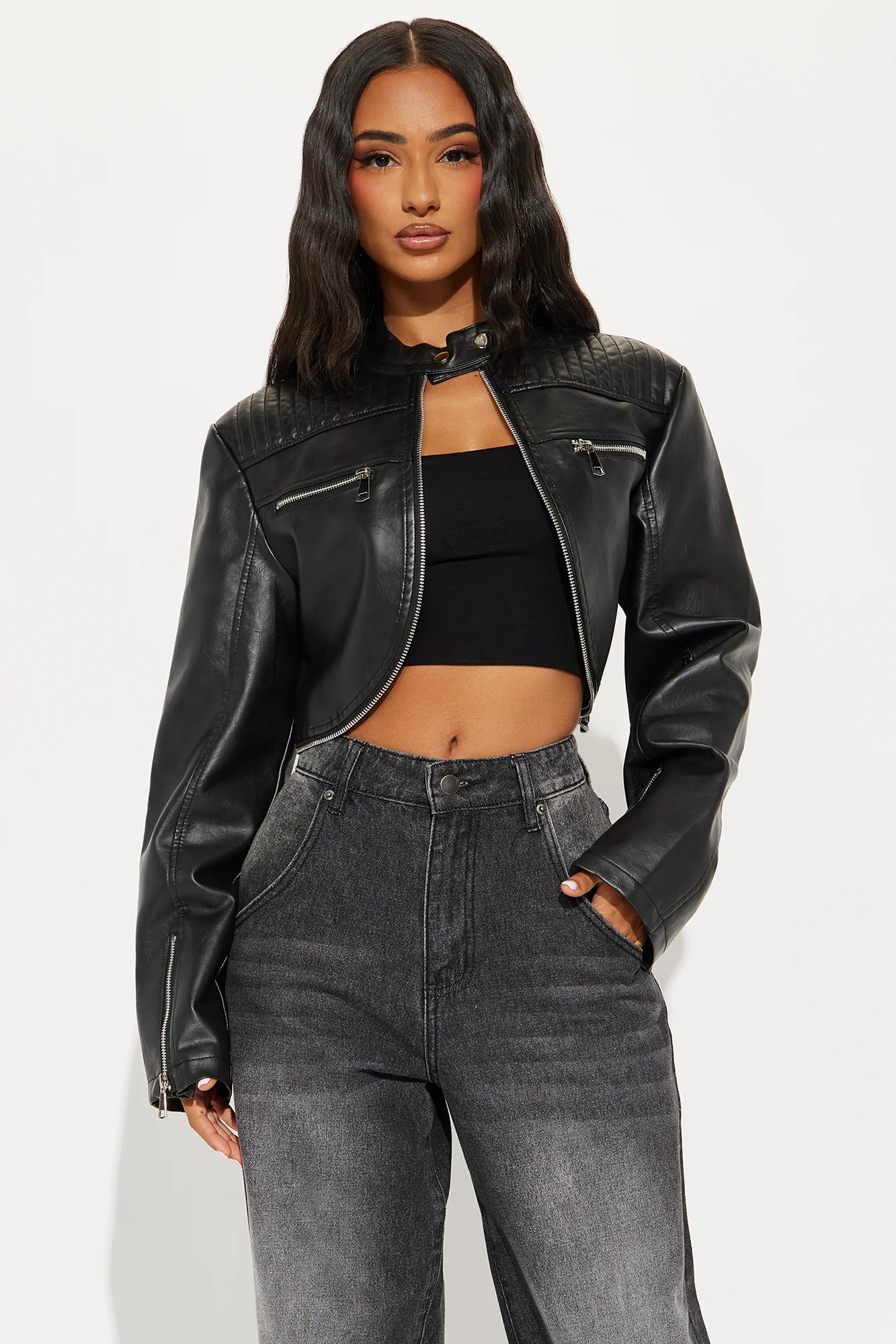 This black leather jacket looks so chic. love it.