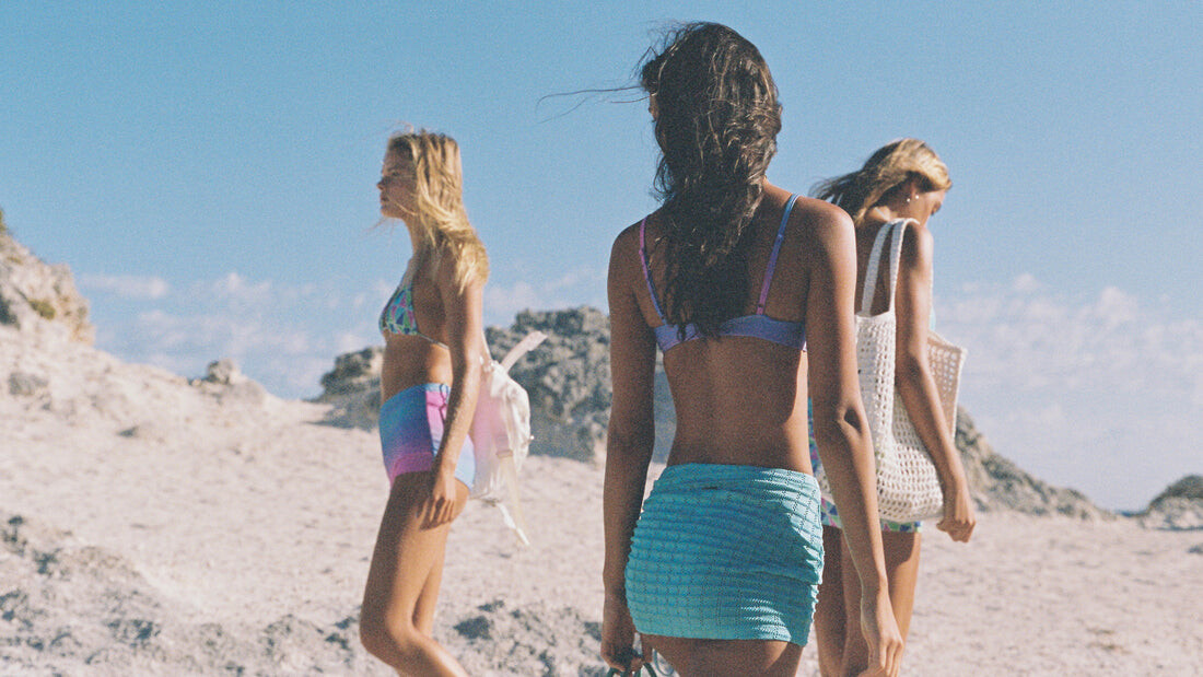 Zoe Blume, Leyla Cross, Roberta George in TRIANGL 'Raft Up' collection photographed by Emily Yates