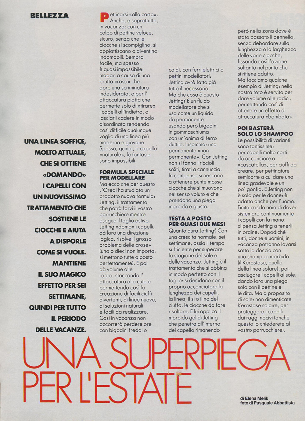 "bellezza: una superpiega per l'estate" GRAZIA IT, 24 Jul 1988 Photographer: Pasquale Abbattista my scans