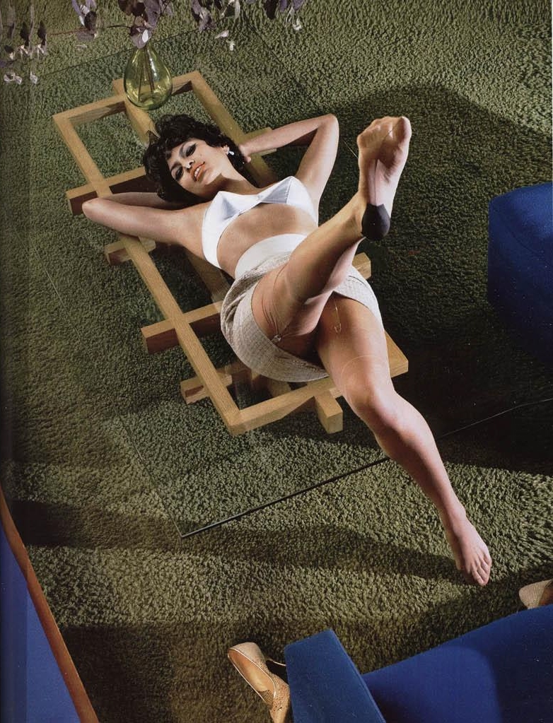 retro look+lingerie+stockings+shoes+feet+red nails =