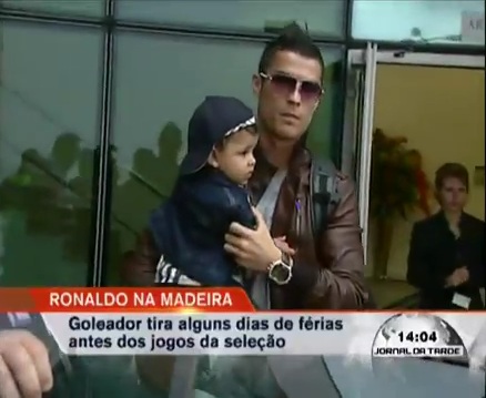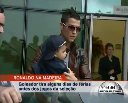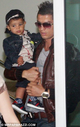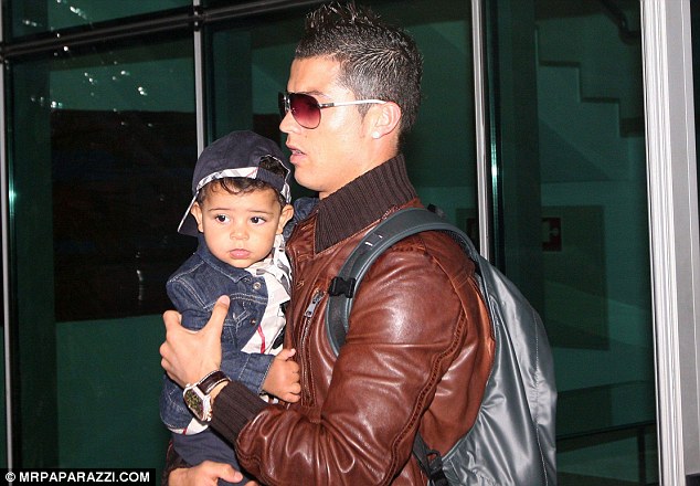 With a head of downy black hair and olive skin, little Cristiano looked adorable as he was carried by his proud father.