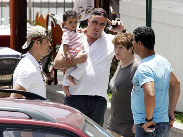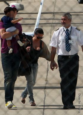 Family time: The couple have been spending time with his son Junior and family on the Portuguese island