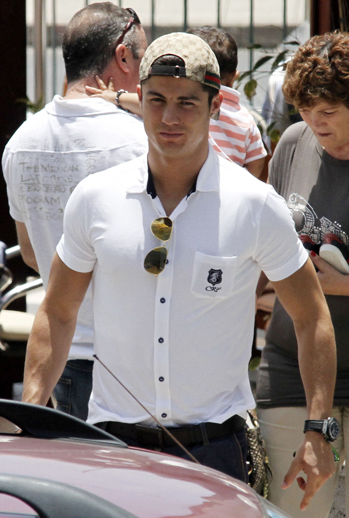 Cristiano, 26, was typically decked out in designer gear in a Gucci cap.