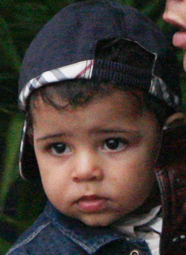 The baby also appeared to have taken after his father in terms of his love of designer fashion, as he was wearing a Burberry checked shirt, denim jacket and matching Burberry baseball cap – which he wore backwards to make it more trendy.