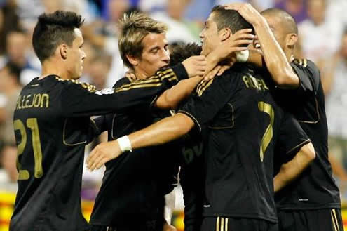 Cristiano Ronaldo: "I want to congratulate the entire team for this great win. Thankfully, I managed to score 3 goals, but that was only possible because of my team mates hardwork. We are a team. I always try to help this team and thankfully it also helps me." said the Portuguese player in a post-match quick interview. Cristiano Ronaldo got assisted by Ozil (1st goal), Di Maria (2nd goal) and Kaká (3rd goal), which allowed CR7 to score his first hat-trick of the 2011-12 season.