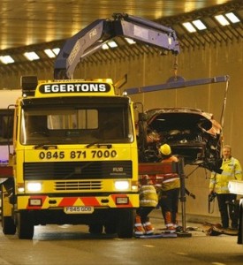 Manchester United star Cristiano Ronaldo walked away unscathed despite writing off his Ferrari in a spectacular car crash near Manchester airport.