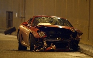 His luxury sports car's front end was smashed to pieces and it lost a wheel as he collided with a roadside barrier while driving to training, the morning after a disappointing defeat for his team.