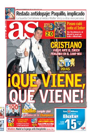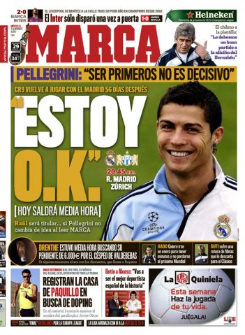 On Saturday, Manuel Pellegrini's side face Racing Santander at the Bernabeu, before hosting FC Zurich in the Champions League next Wednesday and then travelling to Barcelona for 'El Clasico' the following weekend.