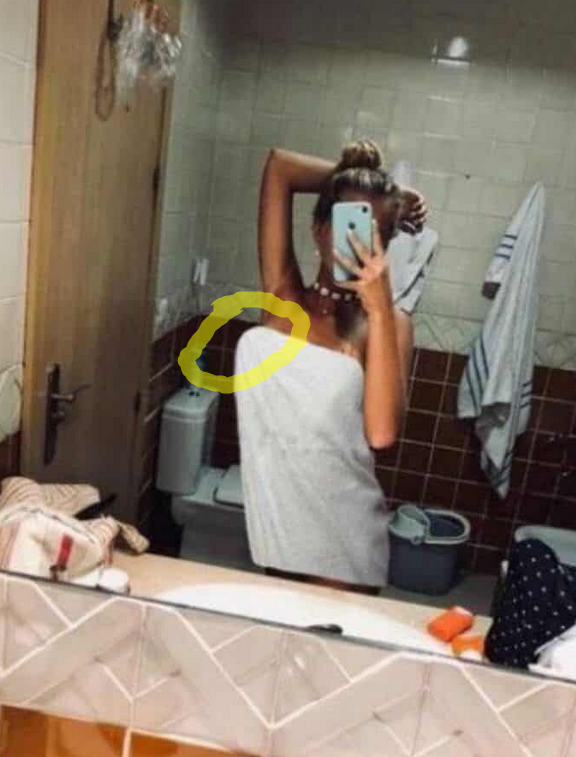 and yea, people take selfies where their face is covered by the phone *all the time*, with Magui doing it herself frequently for social media. This is the same pose and same manner that she's holding the camera. Also, non-provocative? Not everything is about how much skin or figure is showing. She's posing in a bath towel before/after a shower which explicitly implies she's completely nude underneath. Ask a lover if that photo is provocative or not if they get that in a text with a caption "come join me in the shower".