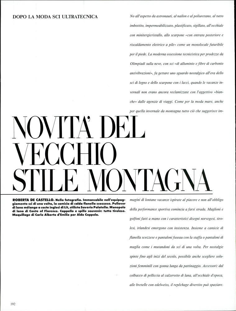 "novita' del vecchio stile montagna" VOGUE IT, Dec 1987 Photographer: Alex Chatelain