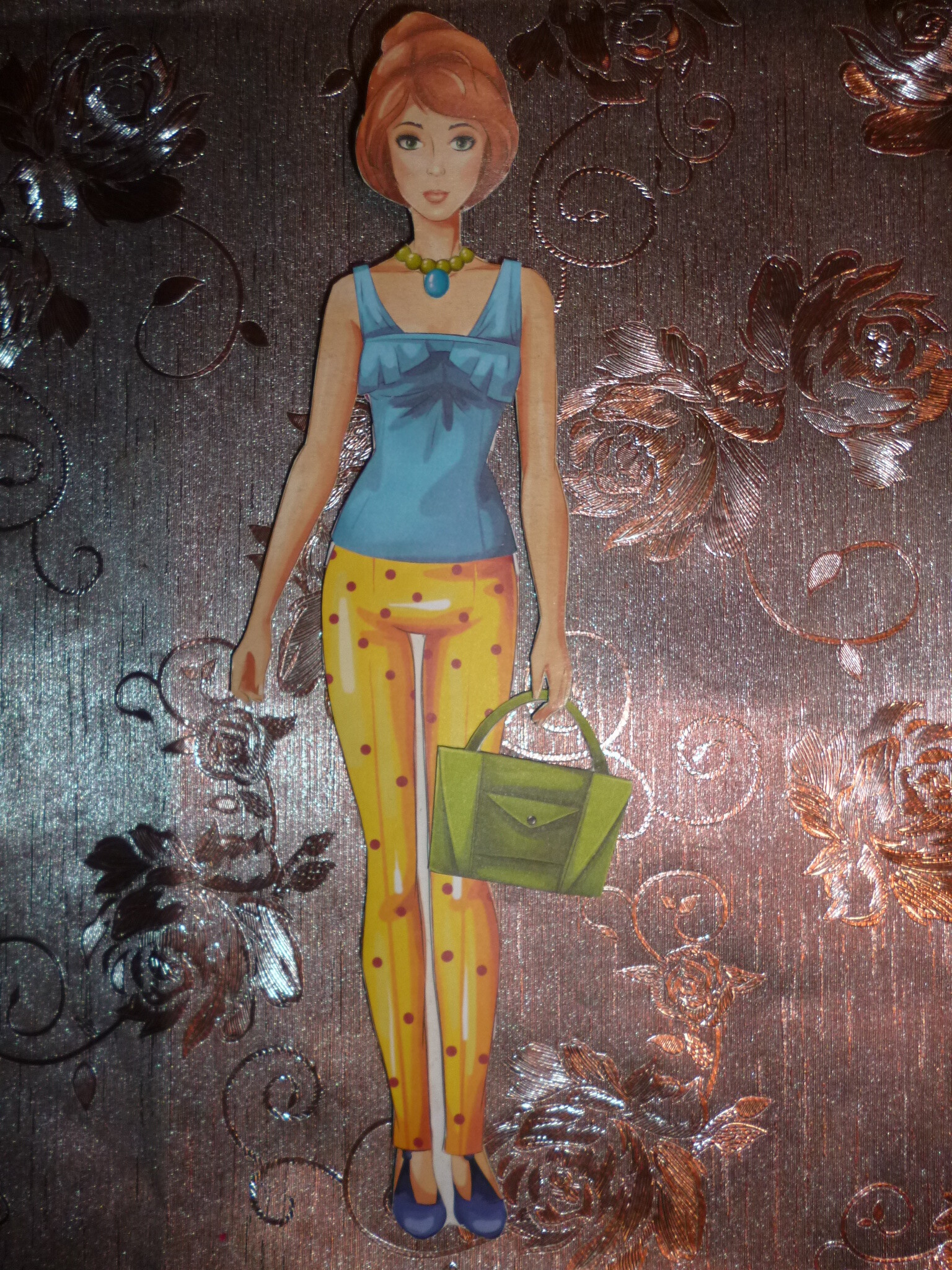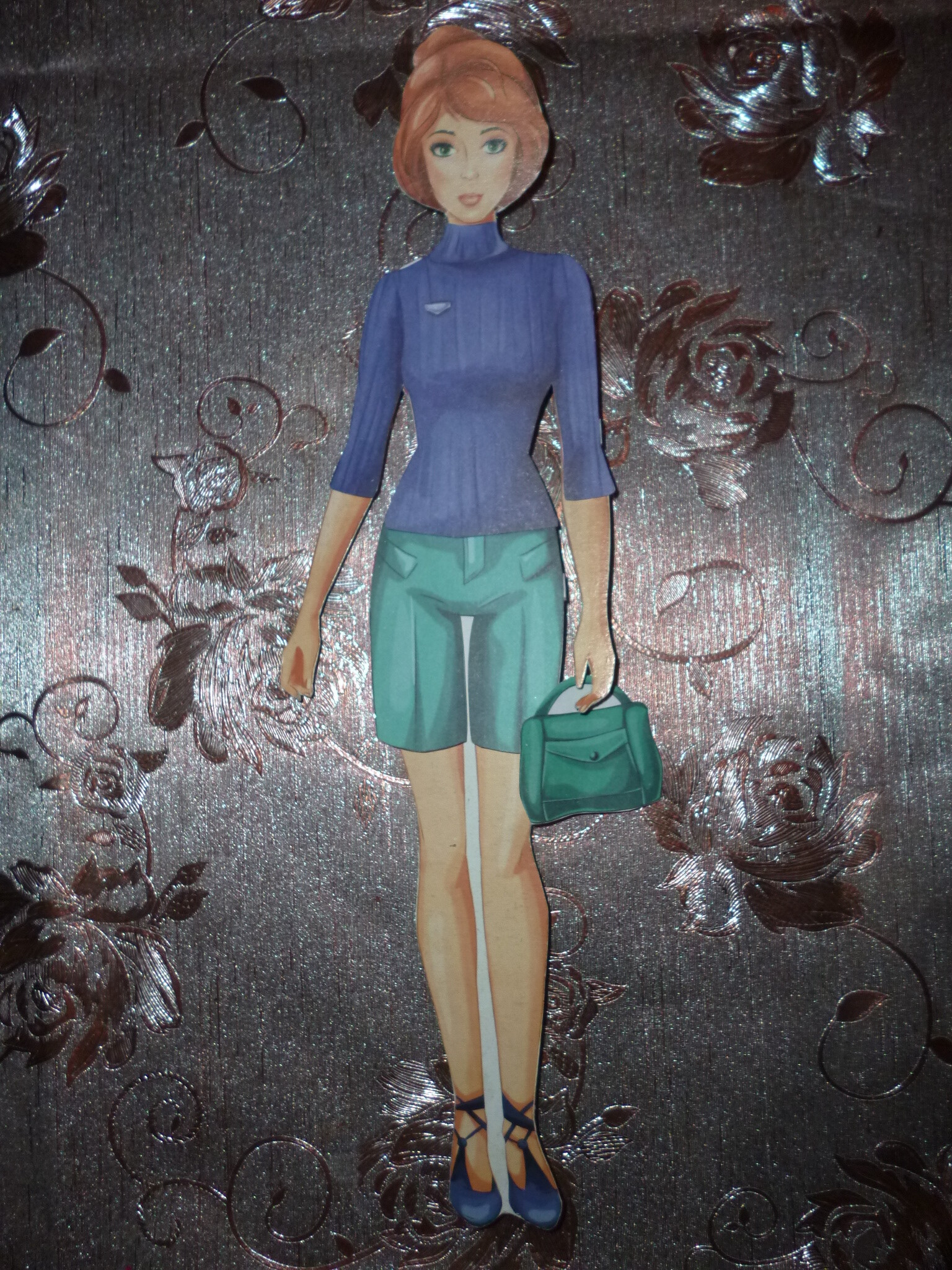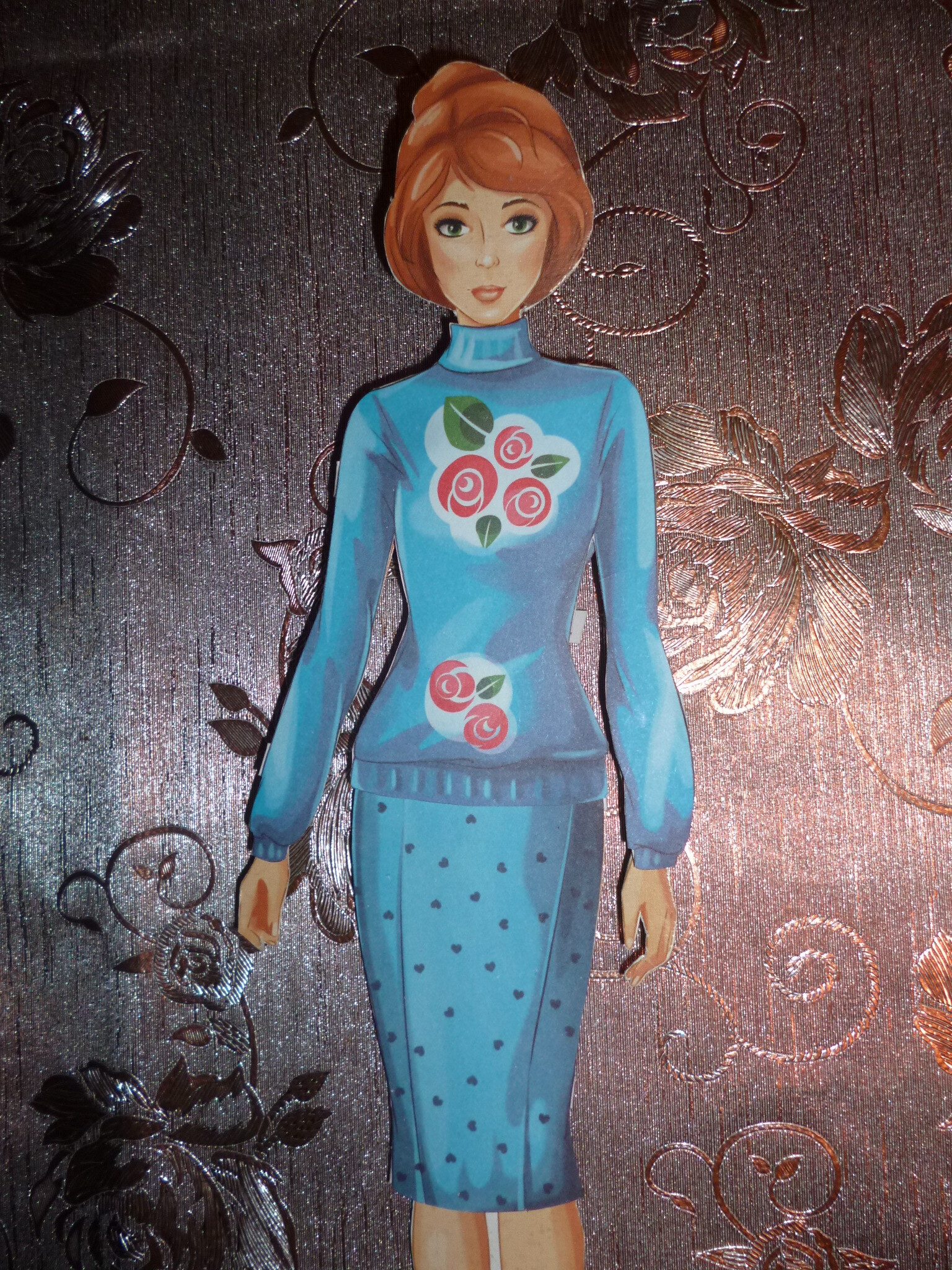 Paper Doll ArtSpace ''Fashion girls.Top-model'' Brown-haired doll in blue. spring 2021,made in Russia.