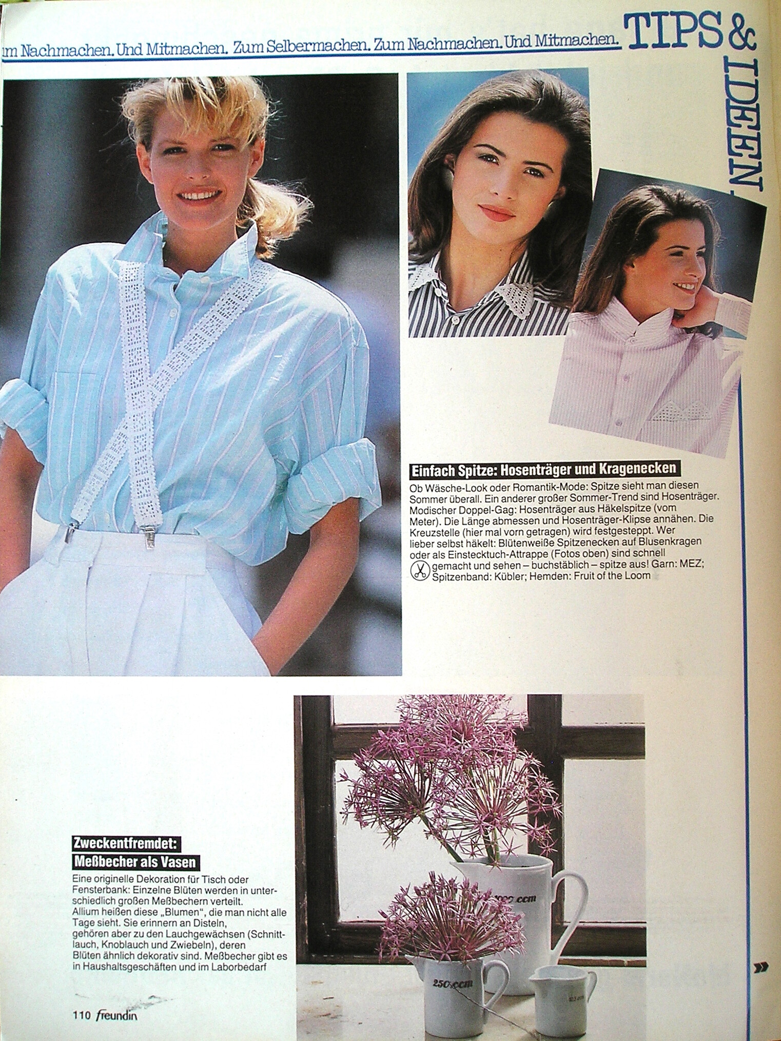 contents + "TIPS & IDEEN" - freundin Germany 8. July 1987 #15 by Martin Brandis, Hans Buttermilch, Guy Chevalier, Wolfgang Dieminger, S. F. B. Dietrich, Winfried Nörenberg - also showing Kaatje Gotcha, Claudia Köhler, Sophie, unknown