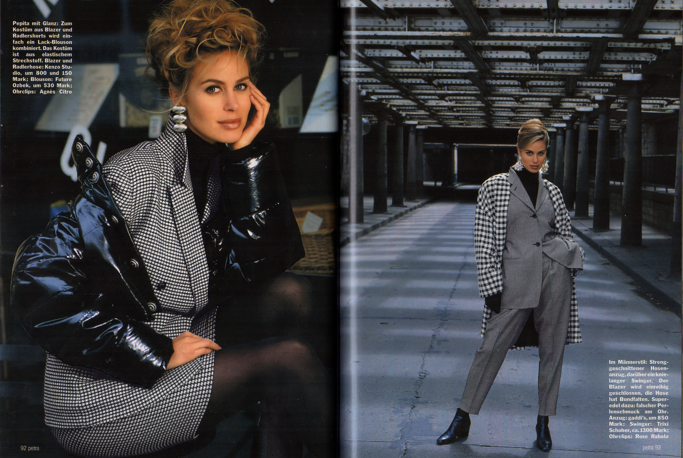 "P.S. SISTA ORDET OM DET SENASTE" - ELLE Sweden December 1992 by Lotta Lewenhaupt, Andre Rau, F. Hauss, J.R. Duran, Hannes Schmid - also showing Carla Bruni, Claudia Mason, Angie Everhart