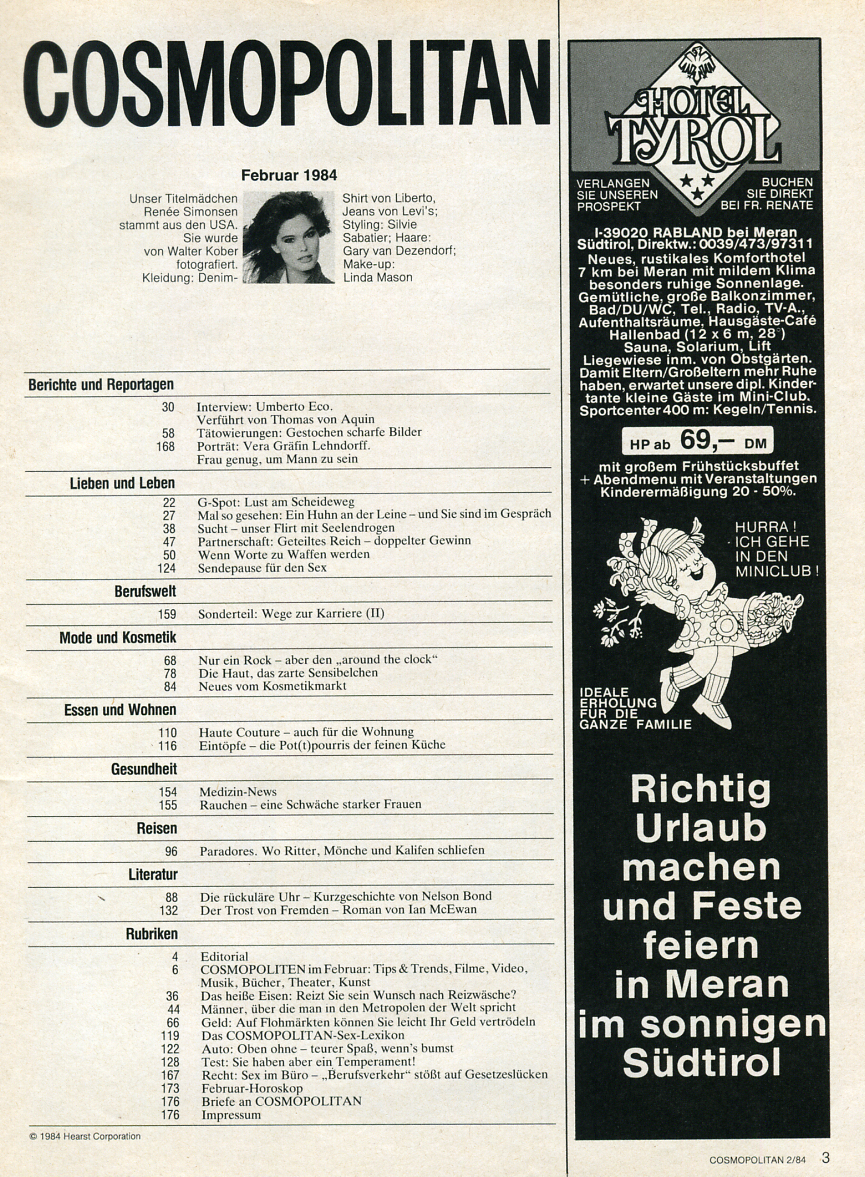 one more from U.K. COSMOPOLITAN, March 1986 issue - also originally from this U.S. January 1986 COSMO editorial. It´s a pity they used the absolute same pic. Sometimes they use pics from one shooting, but different pose/expression. I like these much better!!