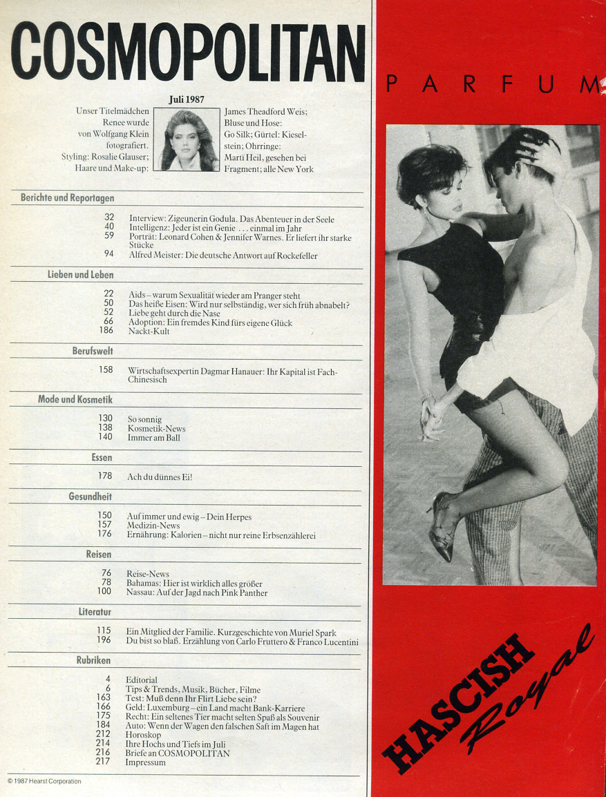 oh, my 100th post!! this is from u.k. cosmo magazine, page 51, no idea about the date, but must have appeared later than january 1986 as the original layout was published in the u.s. cosmo magazine of january 1986. any info about the date of this u.k. one is WELCOME!Wow,I still have this original pic that I clipped out of the Jan.'86 Cosmo.I don't know about the UK publication,however.