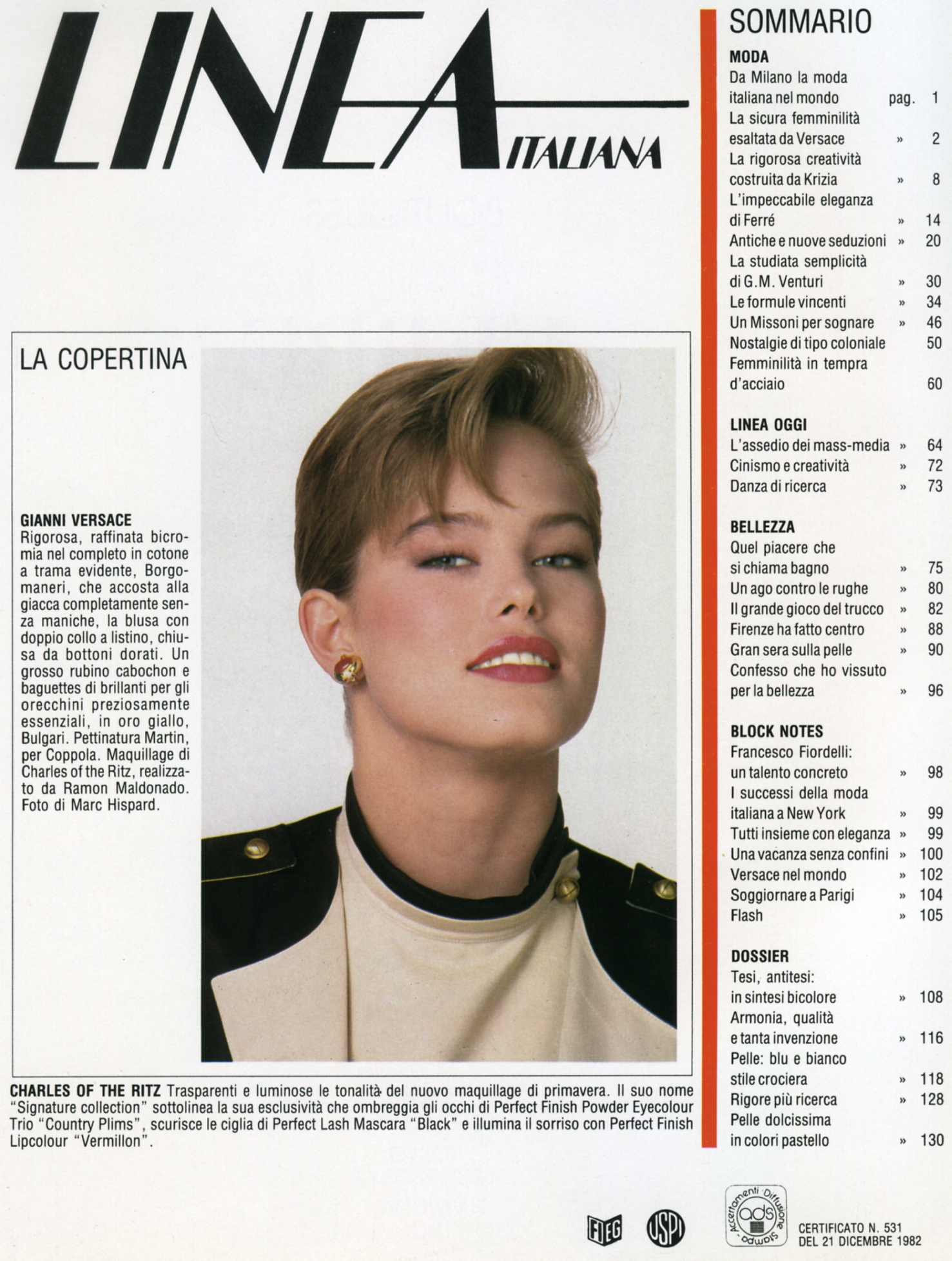 Cover and contents with cover-look of italian LINEA ITALIANA March/2 1983, photographer: Marc Hispard