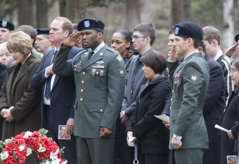 50 Cent made a cameo appearance as himself on The Simpsons episode Pranksta Rap. He starred in the semi-autobiographical film Get Rich or Die Tryin' directed by Jim Sheridan, and co-starring Joy Bryant and Terrence Howard. He has also just released a film called Home of the Brave, co-starring Samuel L. Jackson, and Jessica Biel. Currently, he is working on a role in the movie The Dance, alongside Nicholas Cage, and is set to star opposite Robert De Niro in the 2008 film New Orleans, a movie regarding a police death.