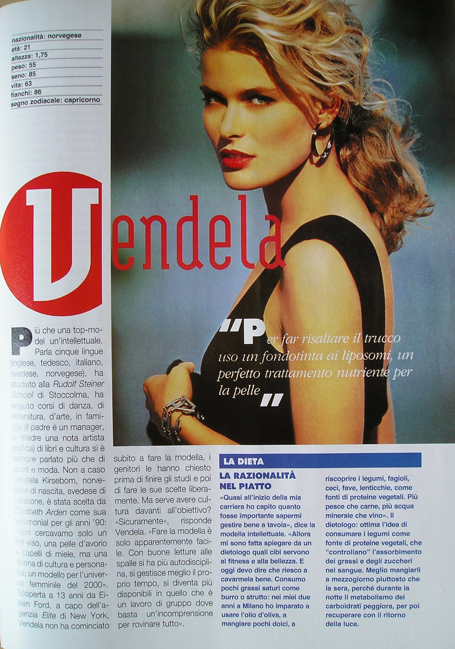 This is from a special/supplement magazine which came with the italian ELLE July 1992 issue called "Le diete segrete delle top model" ("the diet secrets of the top models").