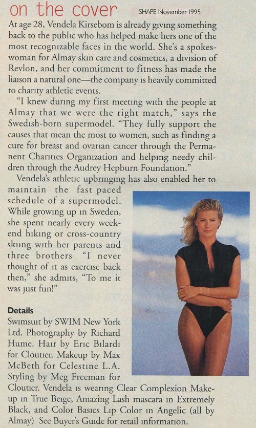 Vendela (of course) was the cover of the 1993 SI swimsuit magazine, and she has an impressive run in the magazine from '92-'97 ('96 only in an ad). I think I just prefer her SI stuff as swimsuit calendar/pinup work. She's so great in SI (especially with Robert Huntzinger).