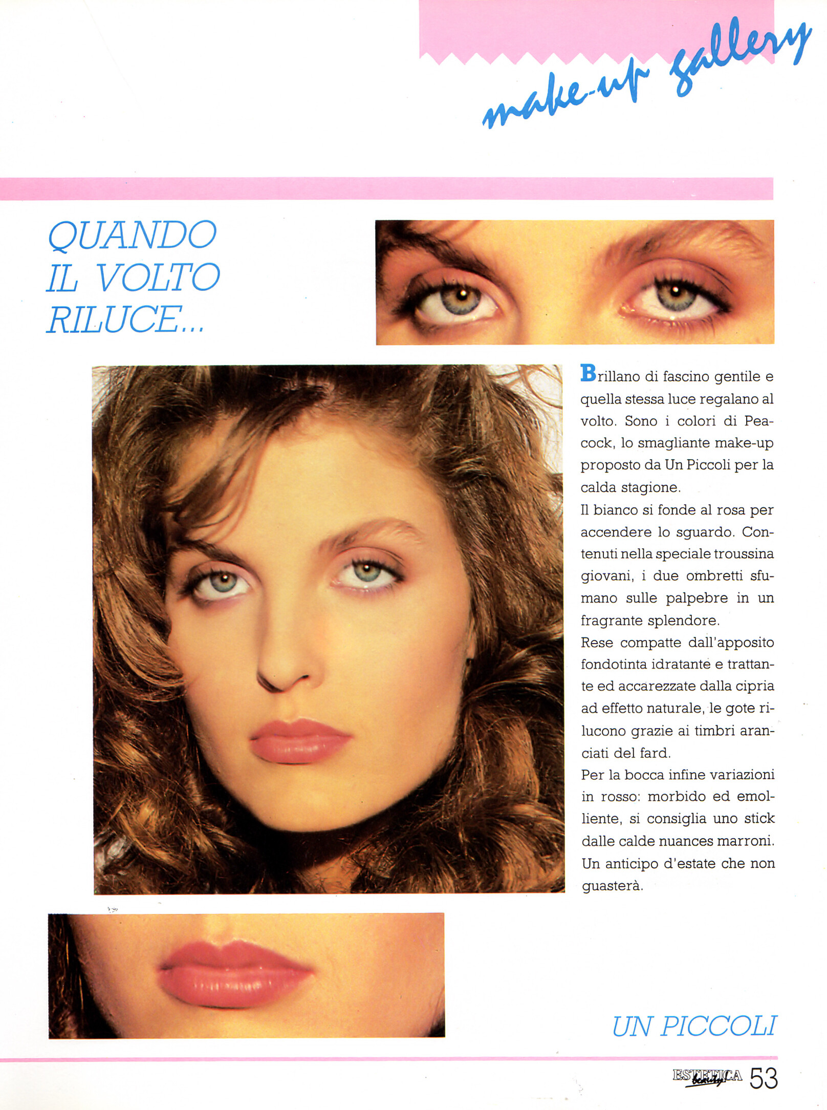 "LA PAROLA AL TRUCCO" - ESTETICA Beauty Italy April 1987 - also showing Isabella Rossellini, Rosemary McGrotha, Fanny, Laetitia Firmin-Didot, Laura Dixon, Cristiana Mucci, Micheline van de Velde, Pia Lind, Lori Hamilton, Mitzi Martin, Bernarda Marovt, unknown