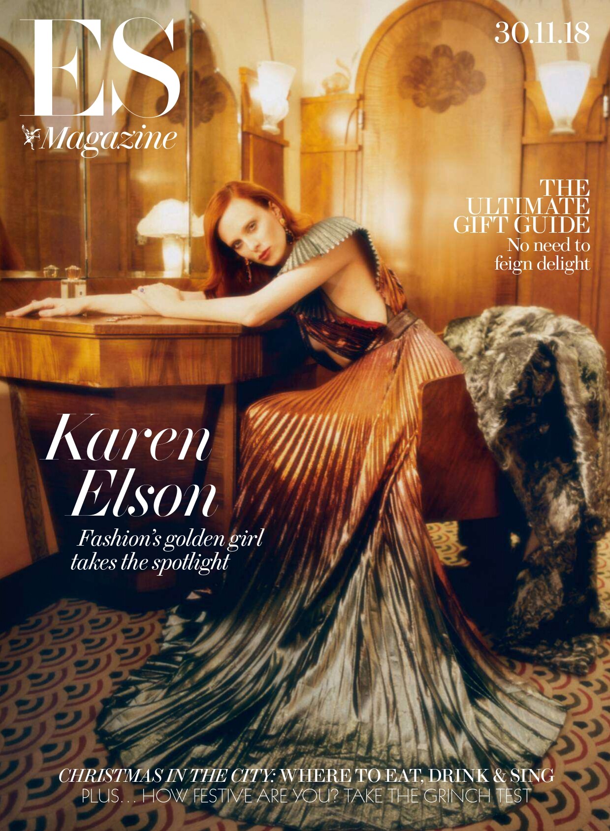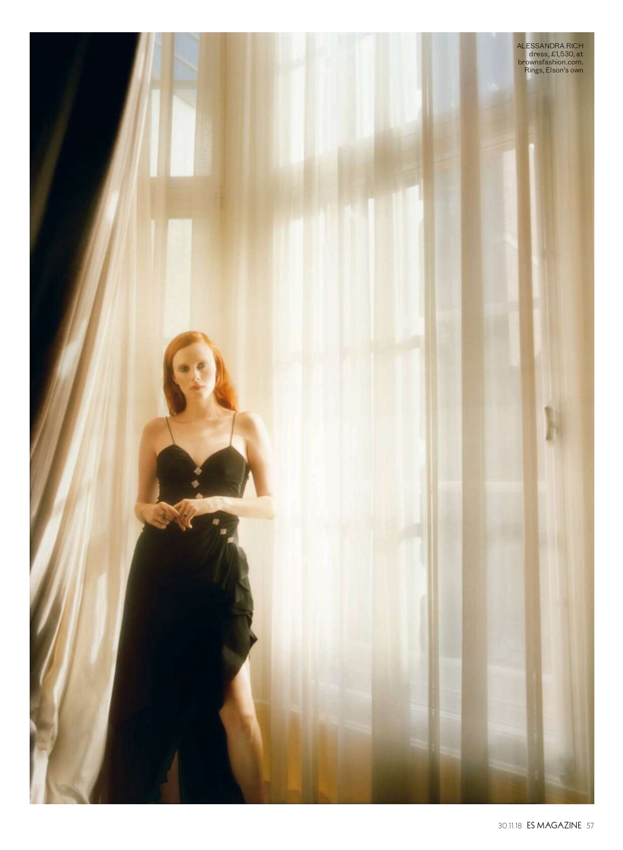 ES Evening Standard Magazine (November 30, 2018) Wild Rose Photographer: Tom Craig Styling: Bay Garnett Hair: Raphael Salley Makeup: Polly Osmond Manicure: Robbie Tomkins Model: Karen Elson