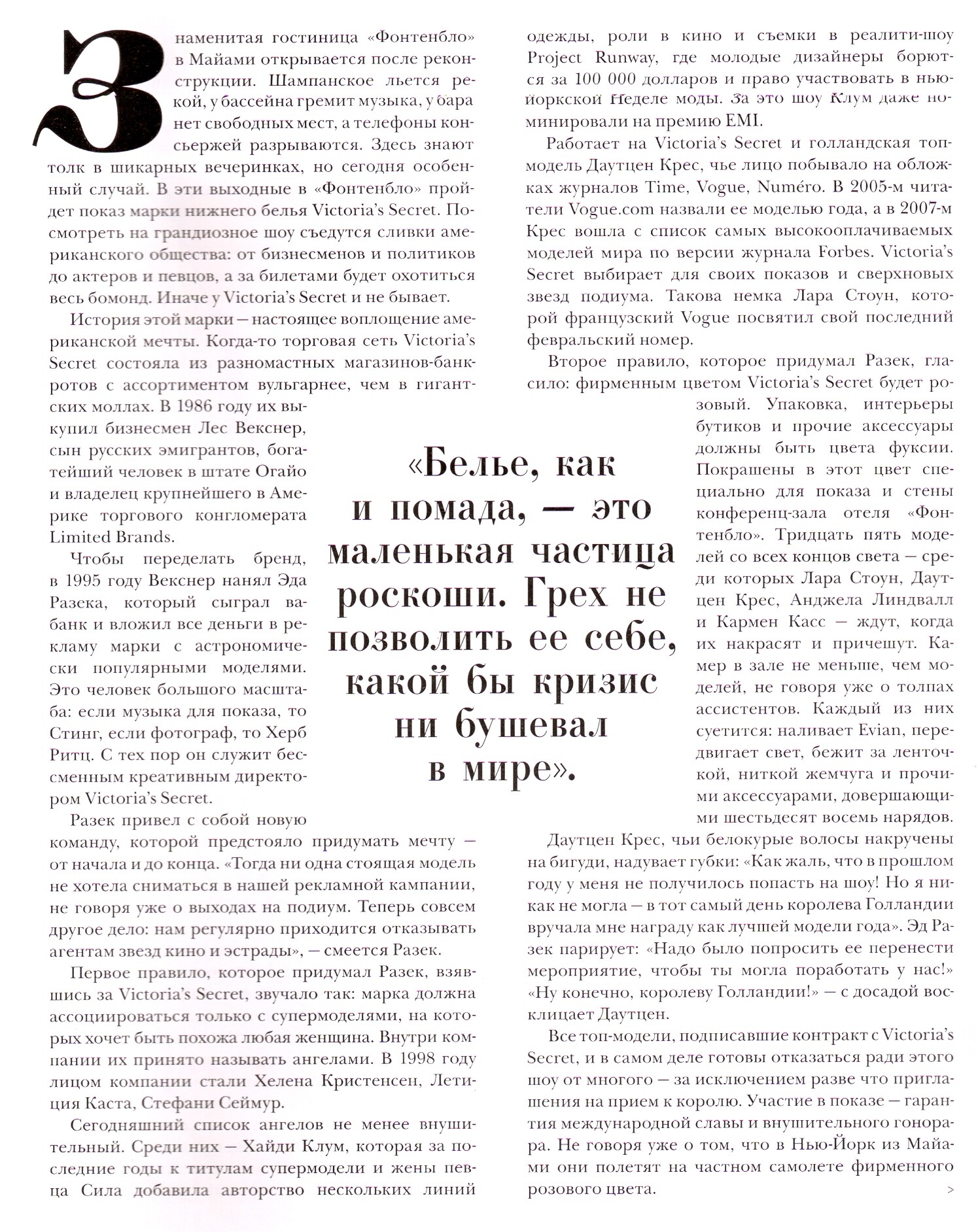 Models: Abbey Lee Kershaw, Doutzen Kroes, Angela Lindvall, Lara Stone, Carmen Kass, Sessilee Lopez, Julia Stegner, Candice Swanepoel & Maryna Linchuk