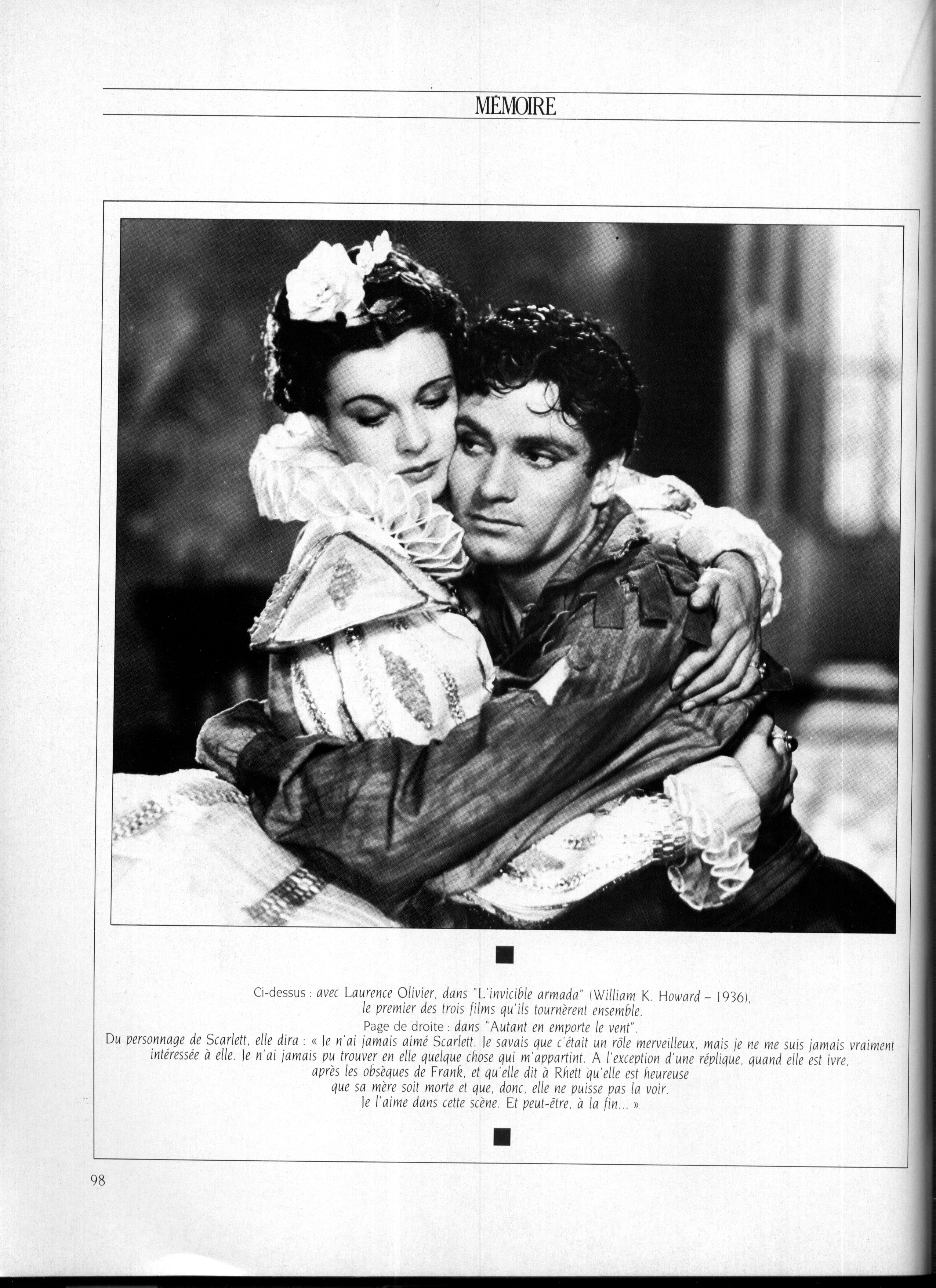 In 2006 de Havilland responded to claims of Leigh's manic behaviour during filming Gone with the Wind, published in a biography of Laurence Olivier. She defended Leigh, saying, "Vivien was impeccably professional, impeccably disciplined on Gone with the Wind. She had two great concerns: doing her best work in an extremely difficult role and being separated from Larry [Olivier], who was in New York."