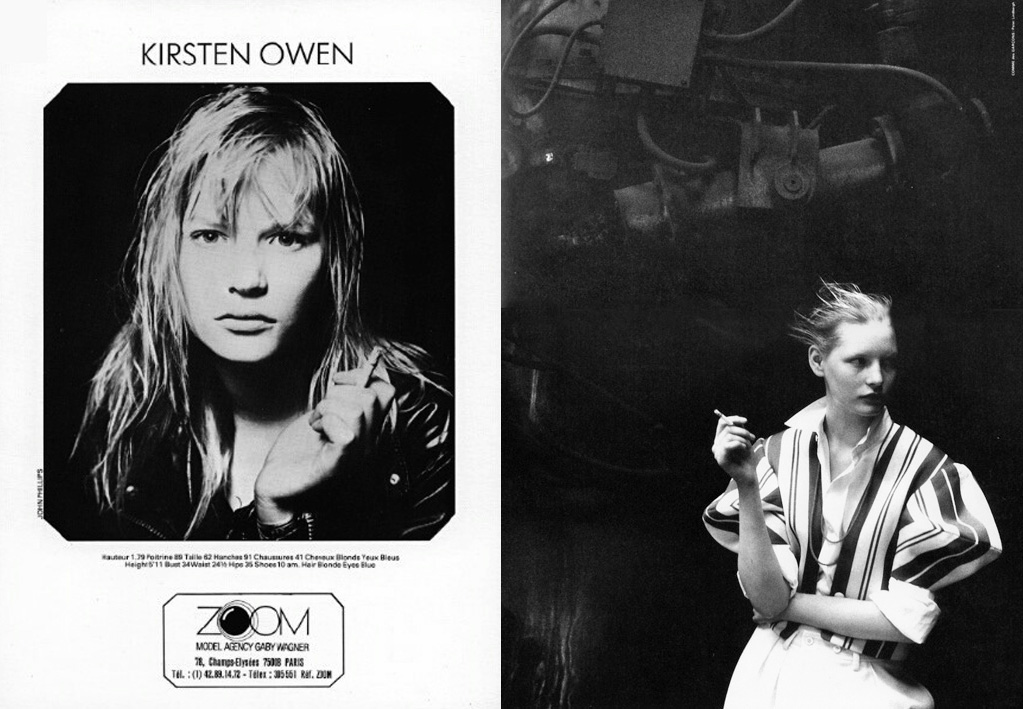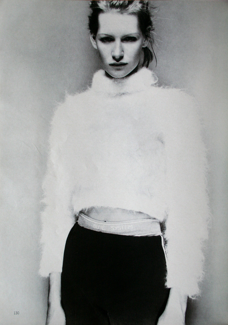 1.- (left) Compcard 1987, (right) Comme des Garçons ad 1988 (photo: Peter Lindbergh). 2.- Pic published in Vogue Italia, July 2007. 3.- Lindbergh´s book. 4.- SIX magazine, Issue #2, 1988 (with Linda Evangelista).