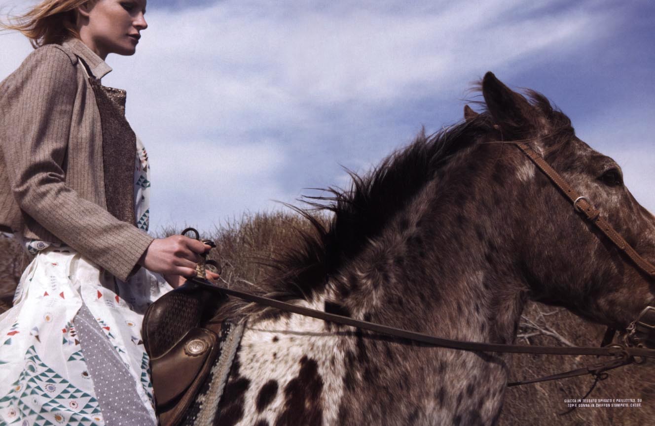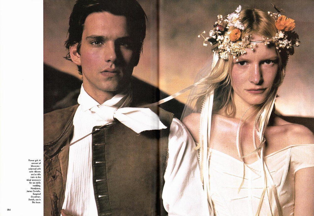 US Vogue, June 1998 ("A Renaissance Romance"): Kirsten, Christina Kruse, Lida Egorova (?), Maggie Rizer & unknown by Steven Meisel. P. Brueghel/pre-Shyamalan´s The Village inspiration...