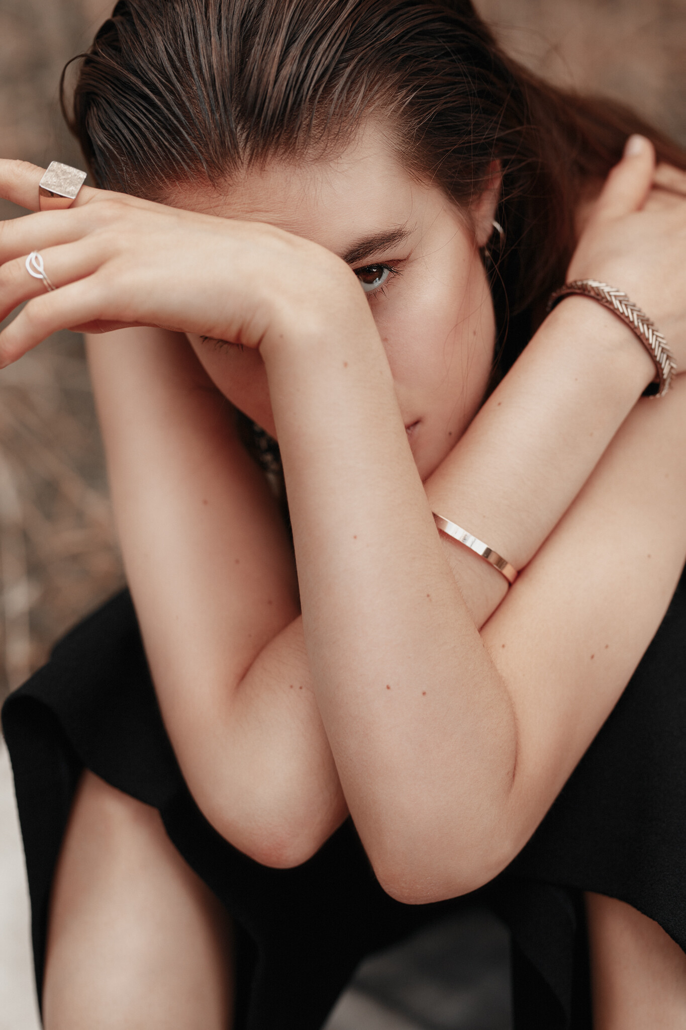 Eyes: brown, Hair: brown