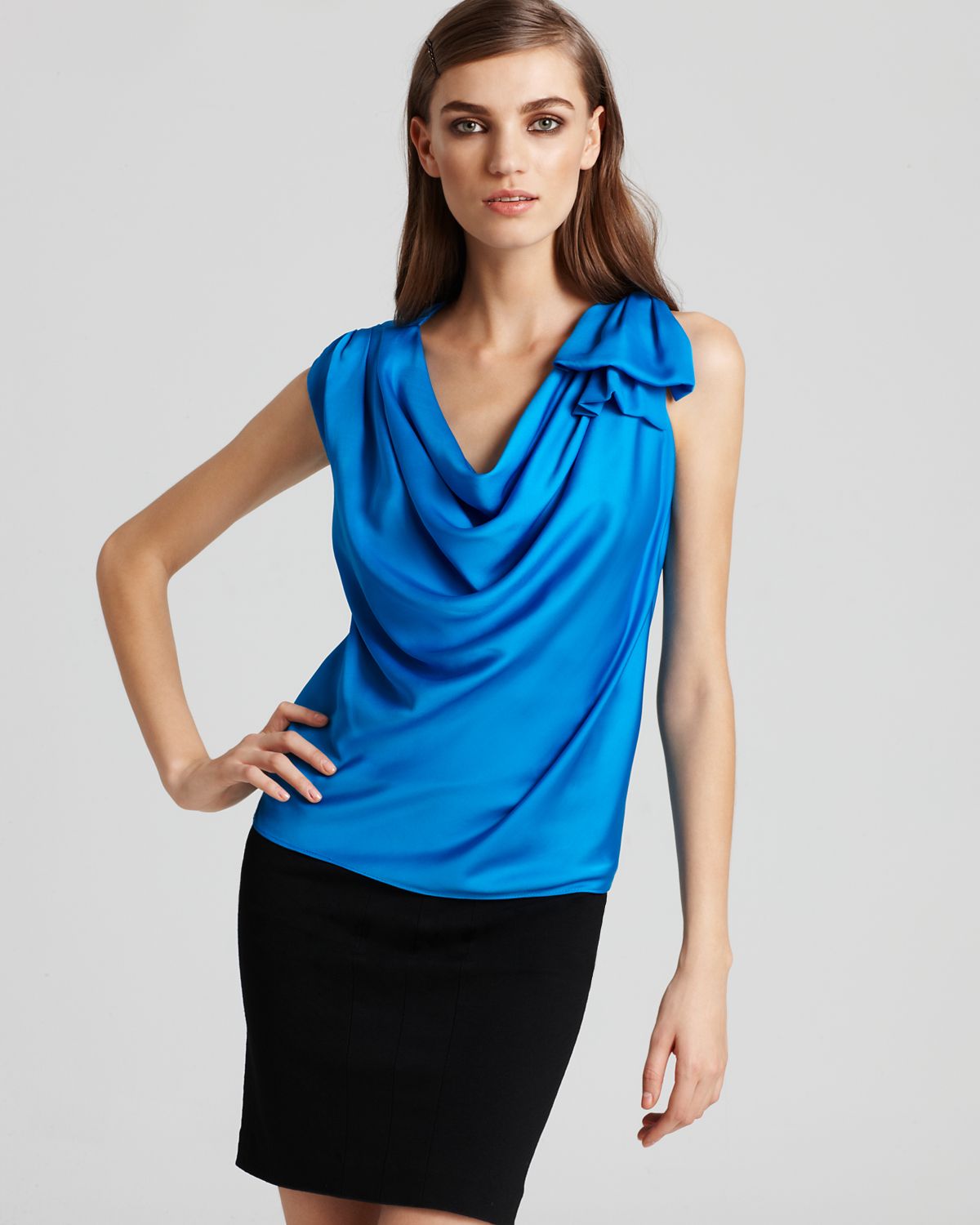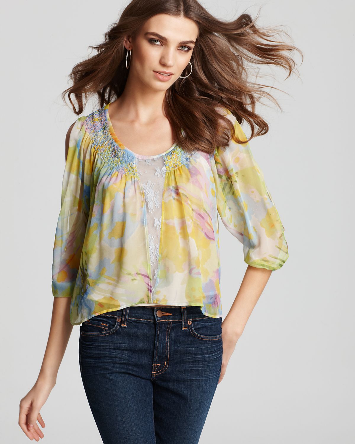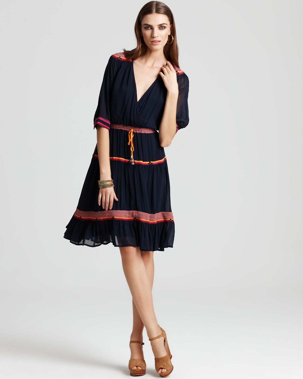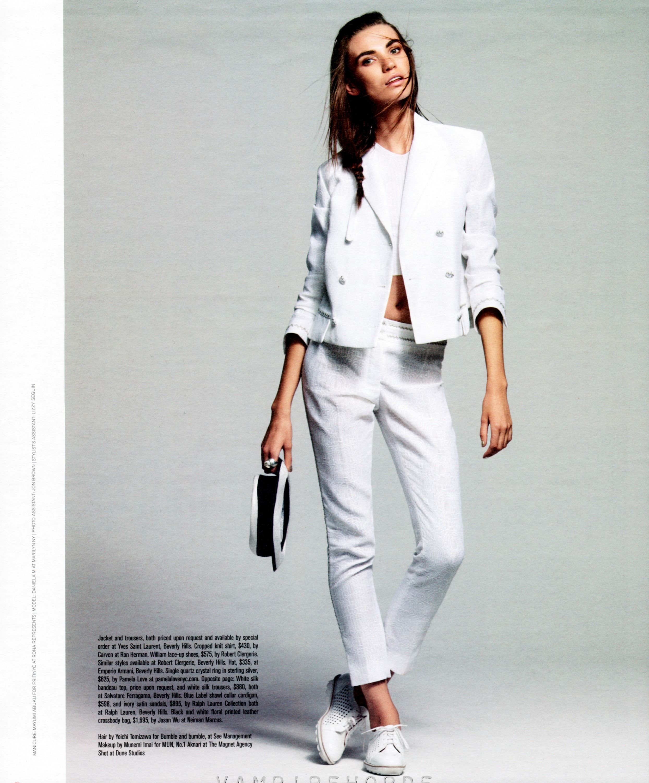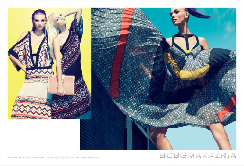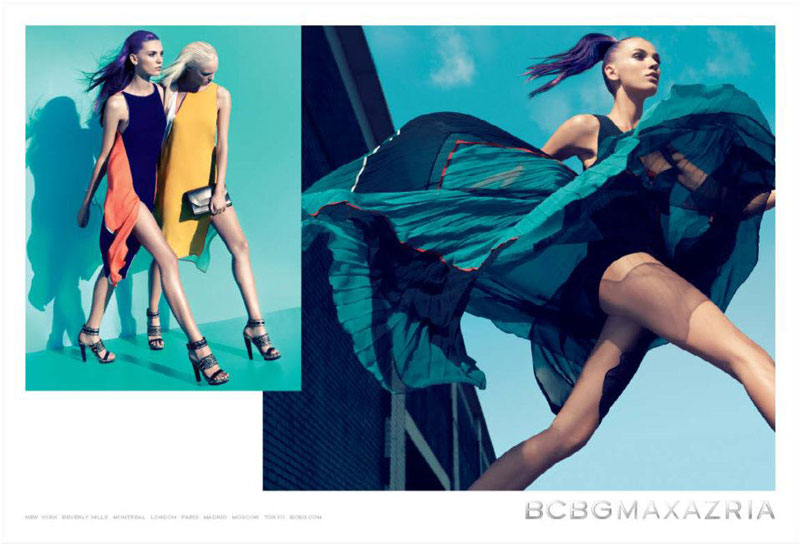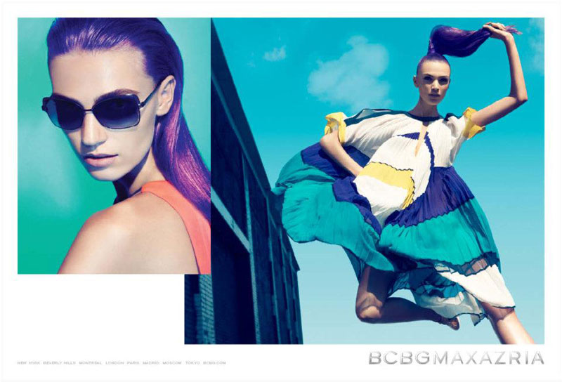 Athletic Spring – The spring 2012 campaign from BCBG Max Azria taps Daniela Mirzac and Theres Alexandersson for a series of athletic inspired images, lensed by Camilla Akrans. Showcasing the label’s youthful dresses with vibrant color-blocking patterns styled by Laura Ferrara (Tim Howard Management), the advertisements go from the studio to outdoors. The girls also sport flawless makeup by Wendy Rowe and lilac hair.
