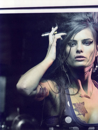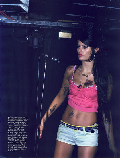 In honor of naked celebrity week (well, that is, if Audrina, Kristin, and Ashley the call girl count as celebrities), Amy Winehouse is also taking her clothes off. Nope, it's not her usual cracked-out ramble through the streets in a dingy bra. This time Winehouse got her kit off for charity, stripping down for photographer Carolyn Djangoly to raise awareness about breast cancer among young women. The songstress appears nekkid in the April issue of British women's magazine Easy Living, where she's pictured strumming her guitar in the buff while covered only in two pieces of duct tape. Because looking scarily out of it (with a mild S&M twist) is just fine, as long as you're doing it for a good cause. Also stripping off for sick ladies? Actress Helena Bonham Carter and '90s crooner Sade.
