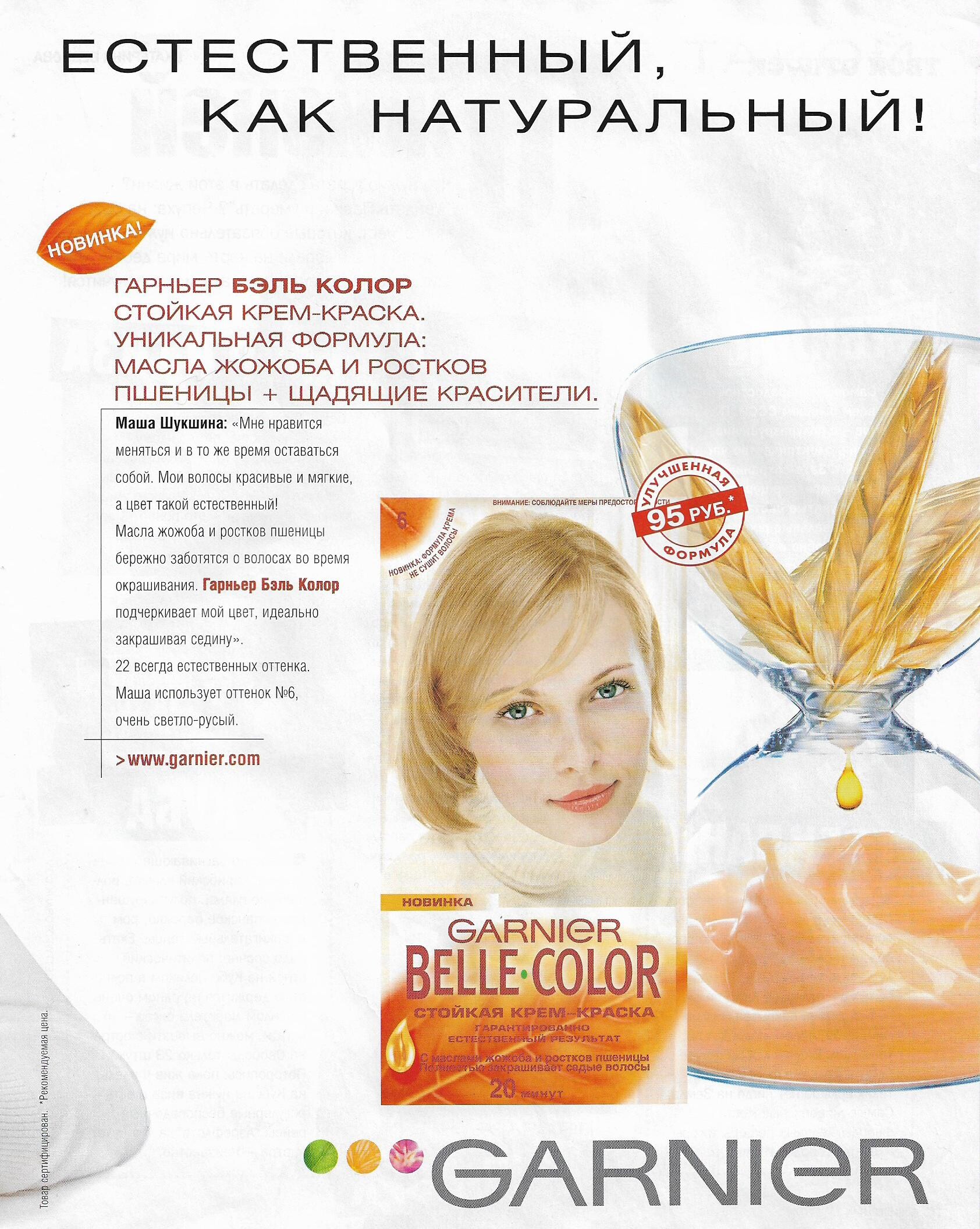 Garnier ''Belle Color'' models: Xandra van Rooijen & Nadia Vassilieva on the box my scans (Burda Russia 2002)