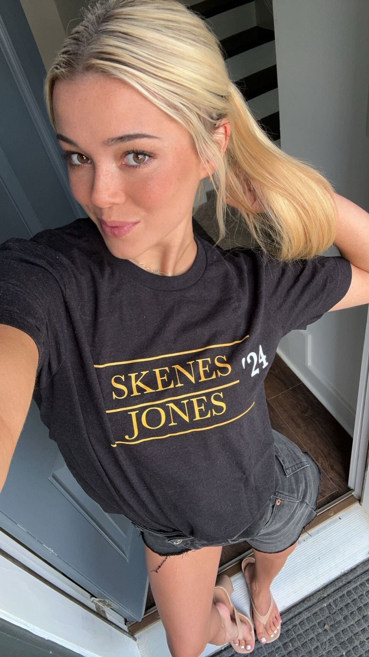 Olivia Dunne - Leggy in white collared navy-blue dress 06/26/2024