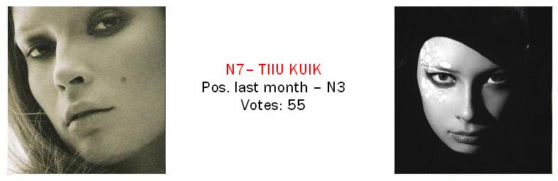 I adore Tiiu but I know her 7th spot is realistic cause she doesn't have that many fans like Natasha or Doutzen...
