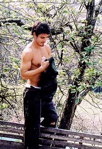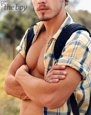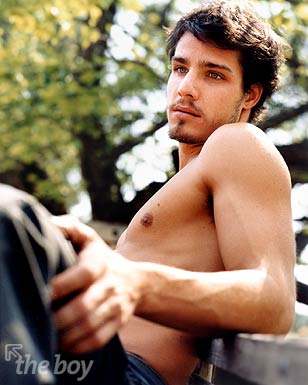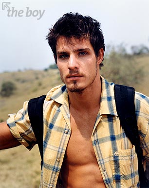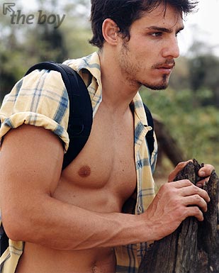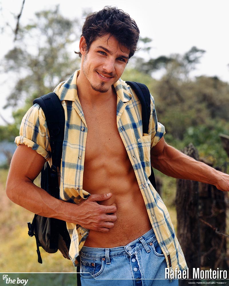 O modelo Rafael Monteiro foi capa do The Boy em Setembro de 2002. E, na minha opinião, esse moreno fabuloso de olhos eternamente azuis figura na galeria dos melhores ensaios do site. Rafael é daqueles homens raríssimos, cuja beleza alia coisas geralmente contraditórias: ingenuidade, beleza e sensualidade. E cada uma dessas coisa se impõe fortemente na beleza do modelo, pois tudo está lá, “ao mesmo tempo agora”: olhar de uma doçura insuportavelmente irresistível, traços do rosto e corpo que beiram a perfeição, sensualidade exacerbada. E basta olhar apenas algumas das fotos para confirmar isto. Posando com um boné na cabeça o modelo mostra aquela beleza furtiva dos garotões; numa cama, apenas com uma toalha sutilmente cobrindo o meio de sua cintura, e com olhar insuportavelmente malicioso, é um vulção de beleza e sensualidade explosivas. É homem pra agarrar e não largar nunca mais na vida, a não ser para pagar a promessa feita de cruzar ajoelhado todo o trajeto até o templo de Aparecida do Norte…todo ano, é claro. Ou você acha que é pouco pra pagar um presente genuinamente divino destes?