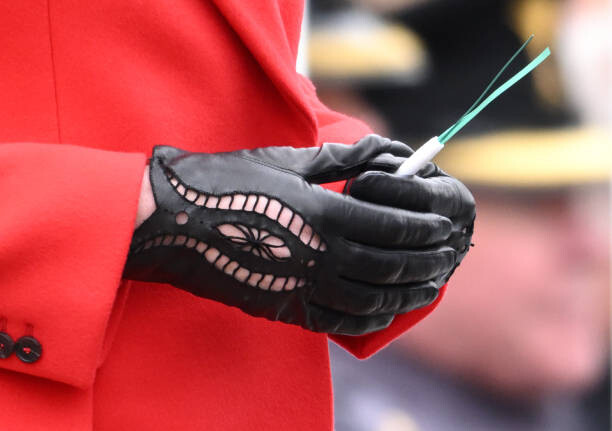 The Princess's accessories from the 1st Battalion Welsh Guard visit on the 1st of March. Credit: Gettyimages.