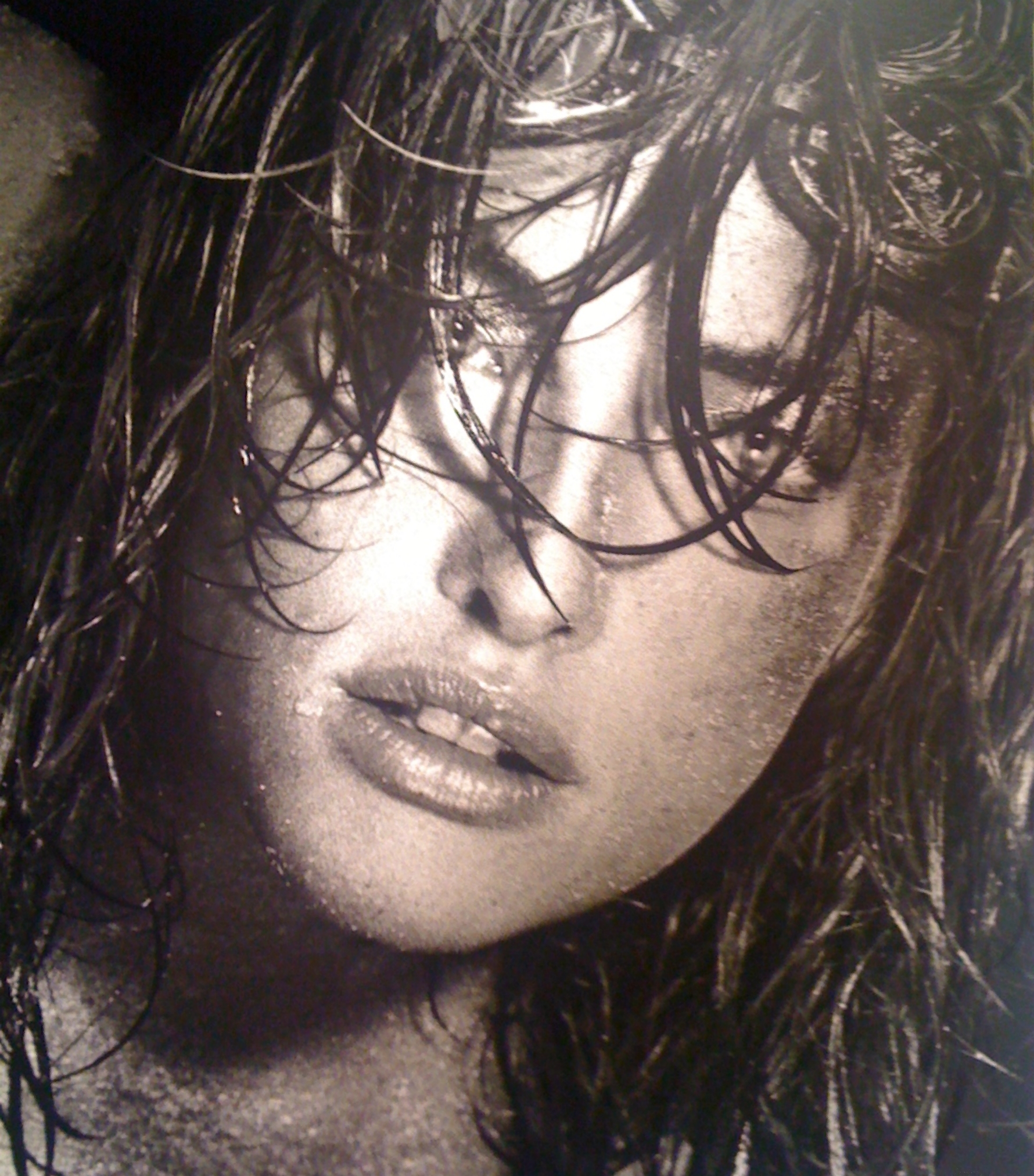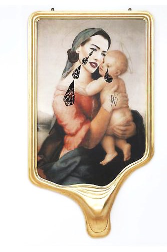 Tatjana Patitz as the crying Vergin with child, as shown in "Sacrilegio" by Francesco Vezzoli in the Gagosian Museum Gallery